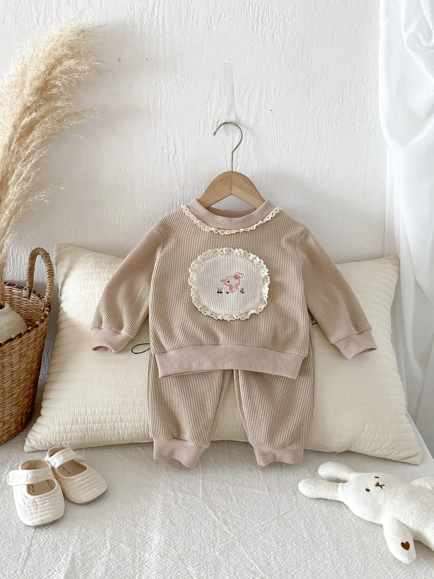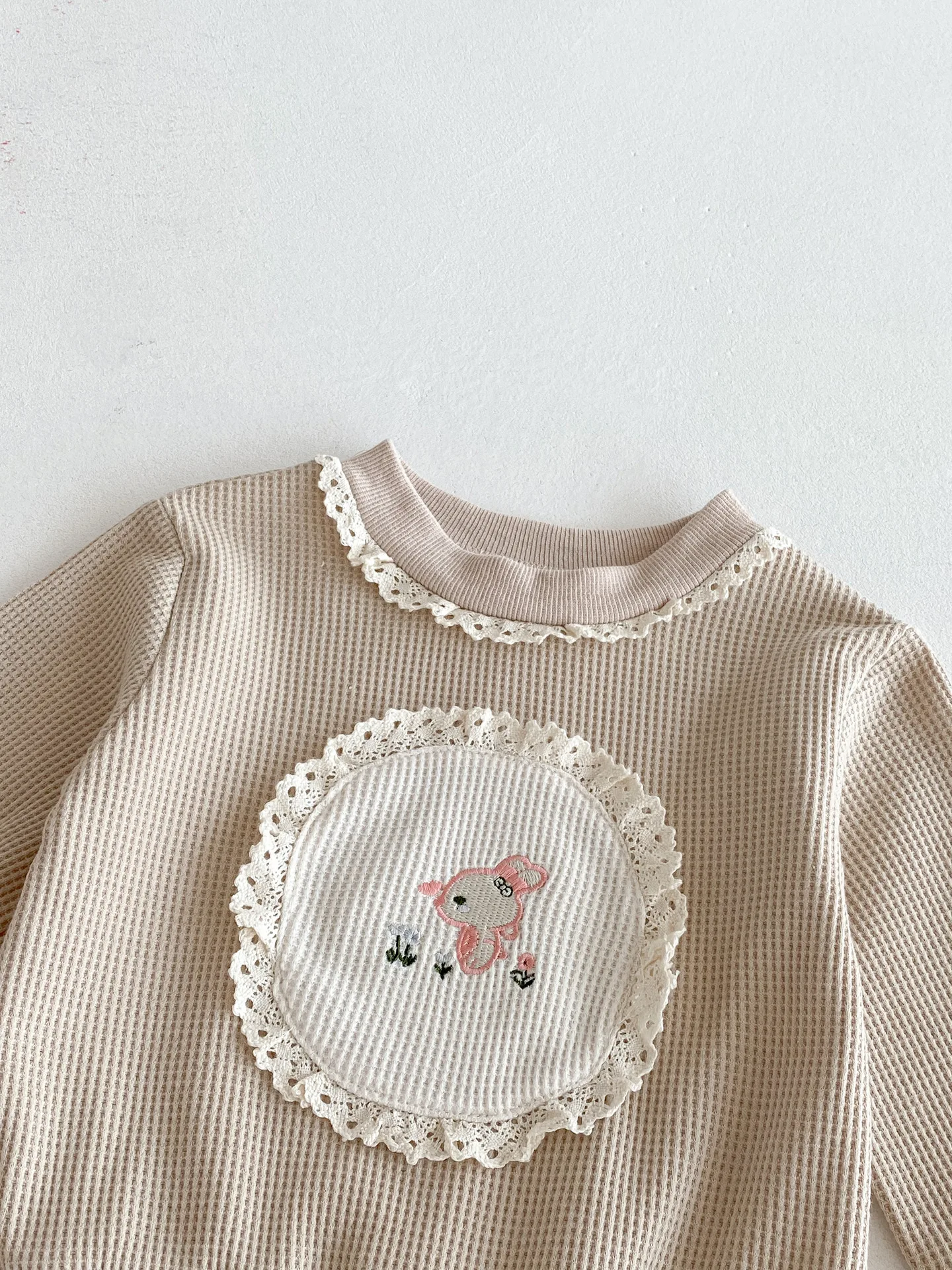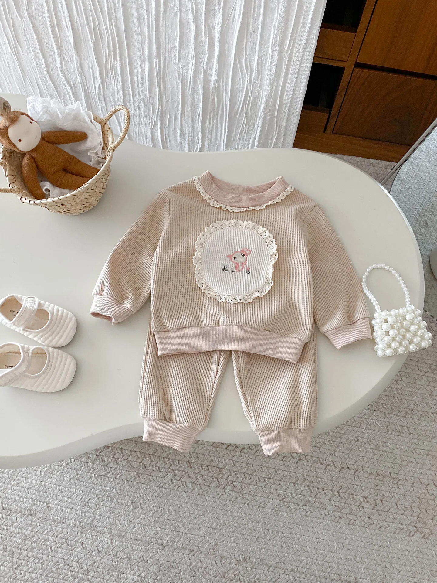 Tamaño: 73 80 90 100 110Edad: 9m 12m 2T 3T 4T 5TLongitud: 33 35 37 39 42Busto: 30 31 32 33 35Manga: 24 26 28 30 33Pantalón: 43 47 51 55 59Dobladillo: 29 30 31 32 33