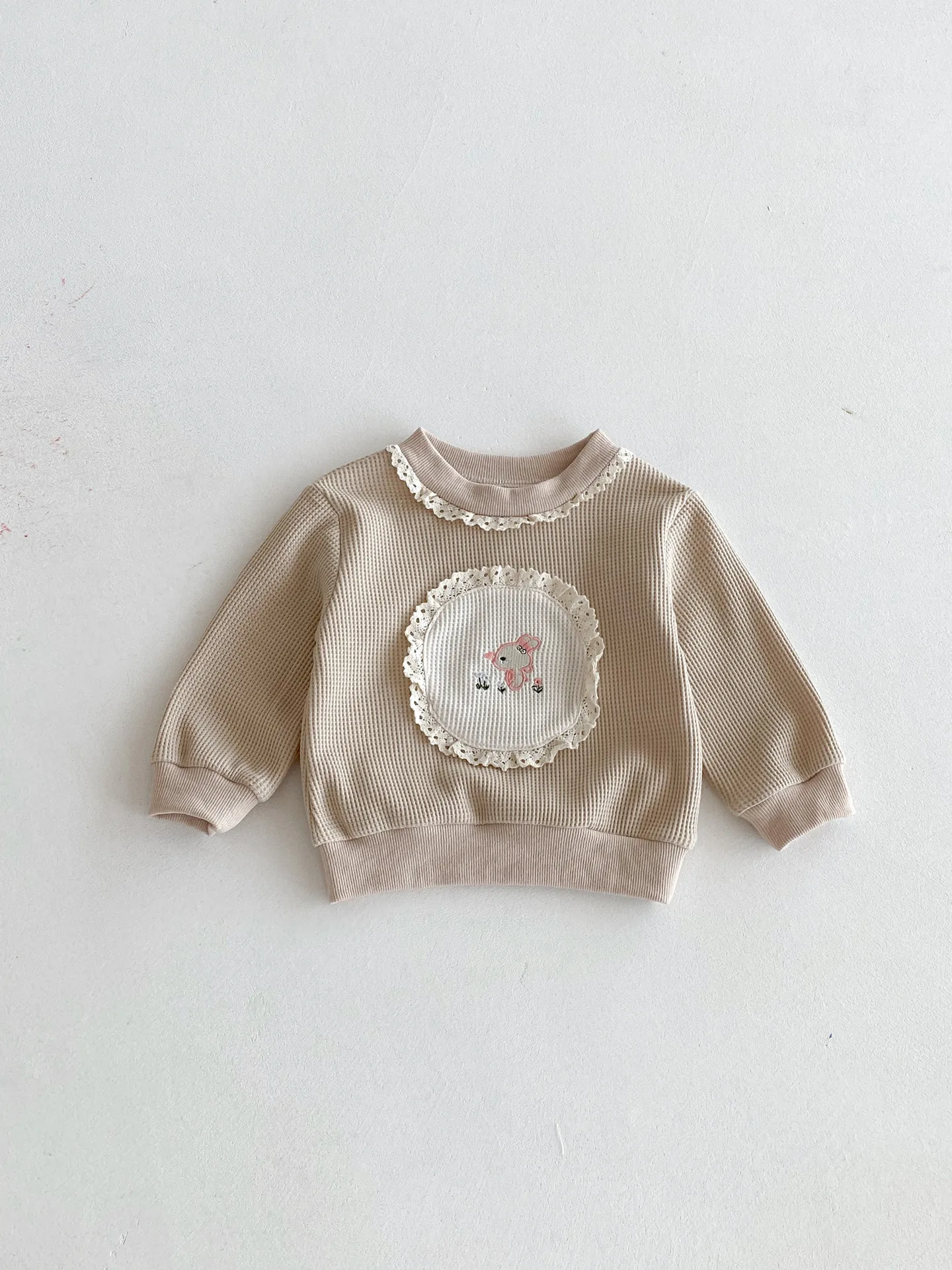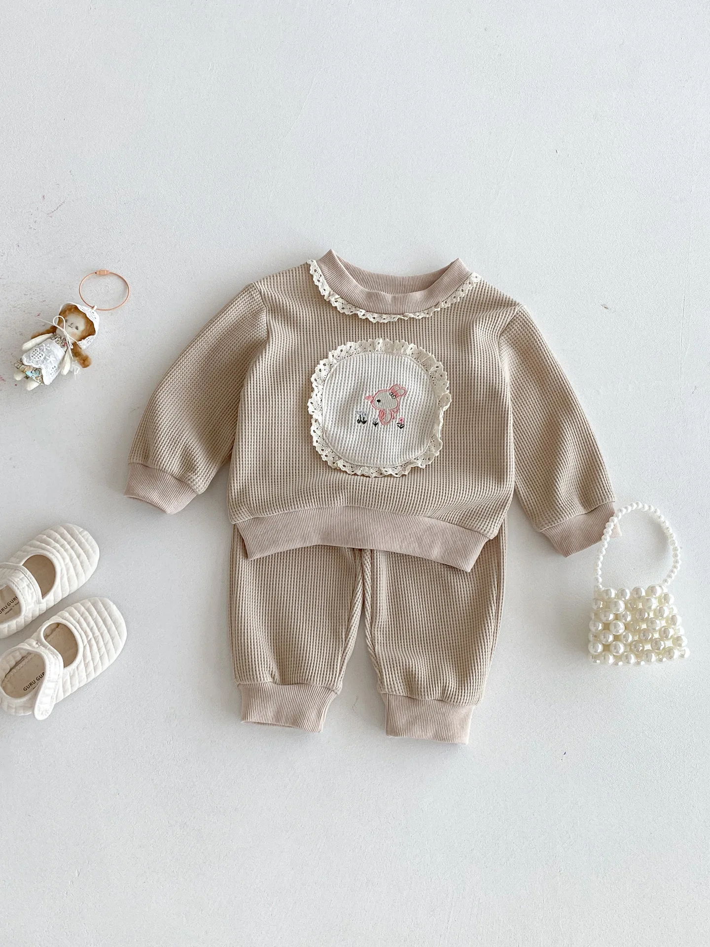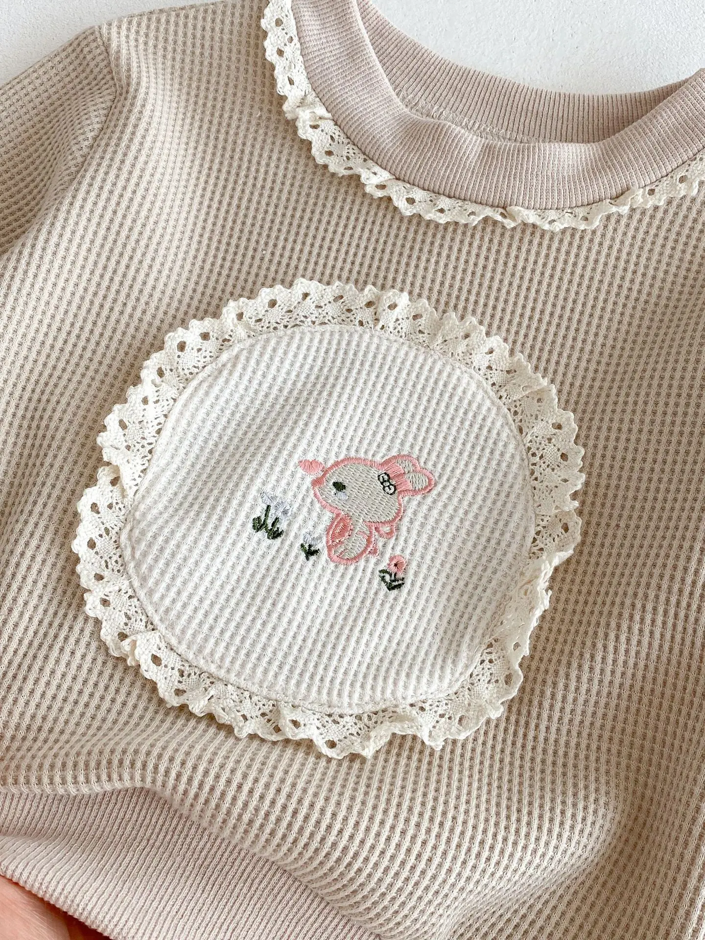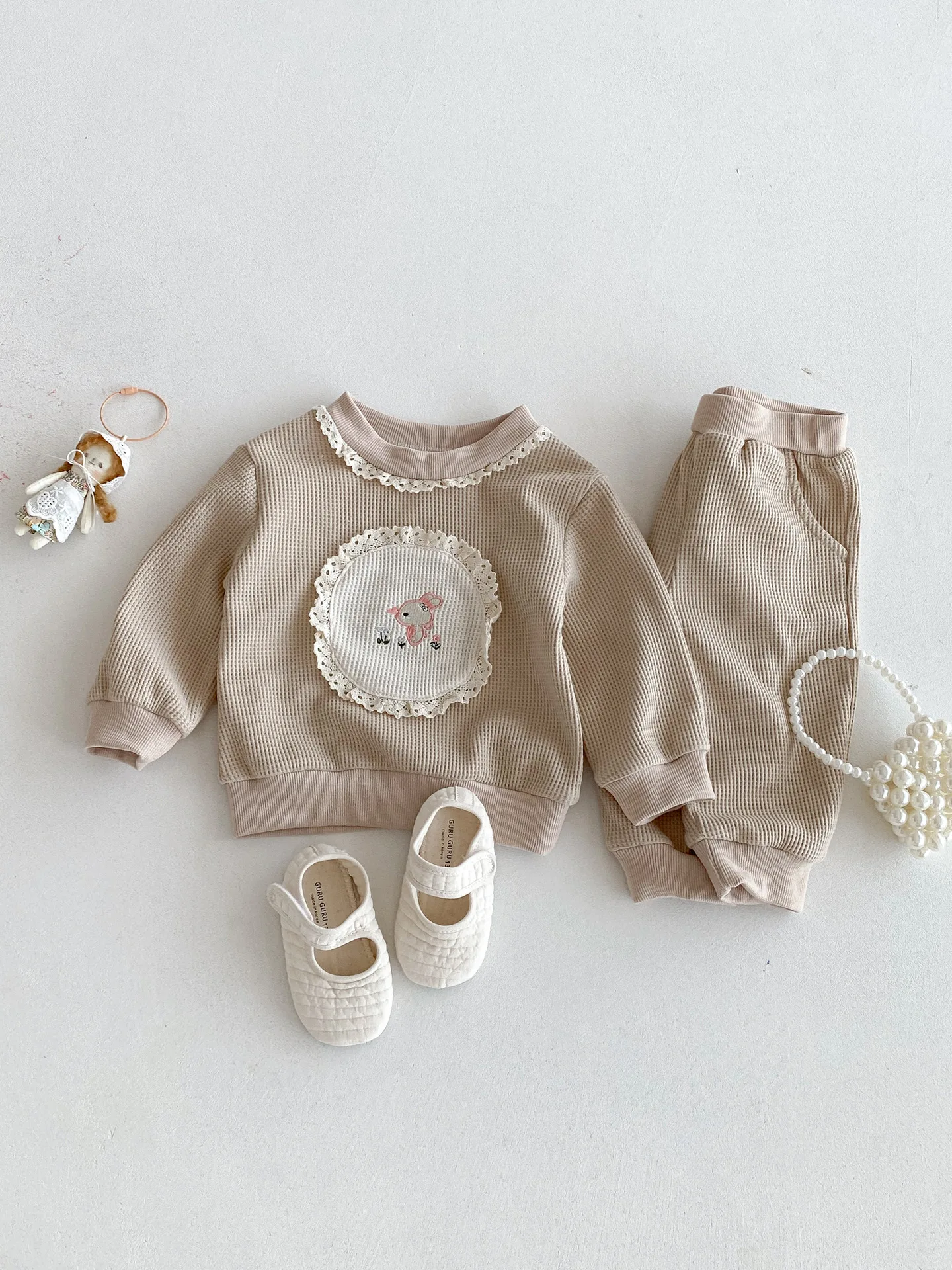 Tamaño: 73 80 90 100 110Edad: 9m 12m 2T 3T 4T 5TLongitud: 33 35 37 39 42Busto: 30 31 32 33 35Manga: 24 26 28 30 33Pantalón: 43 47 51 55 59Dobladillo: 29 30 31 32 33