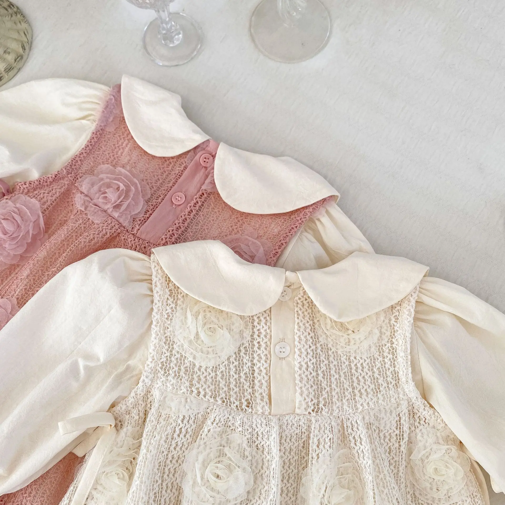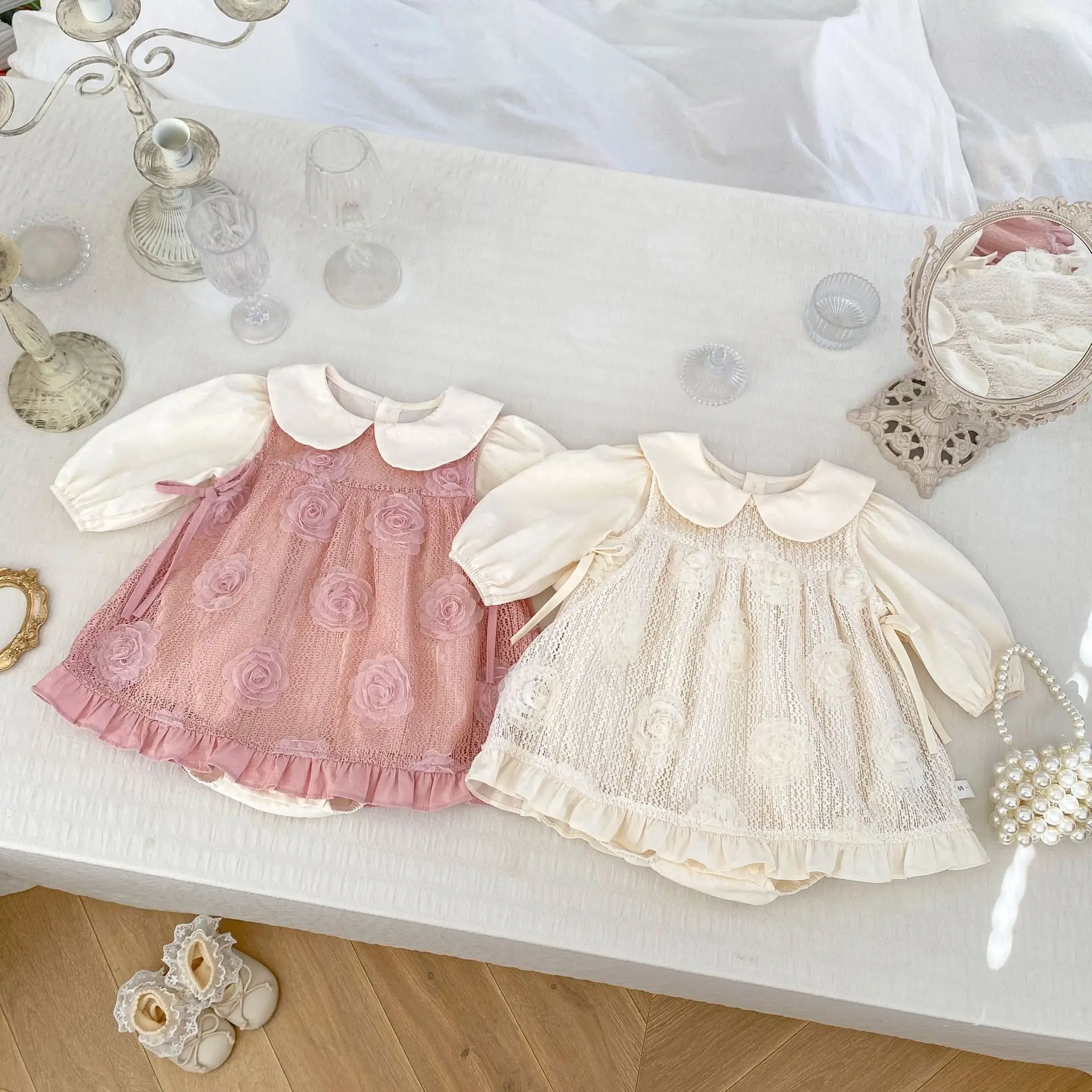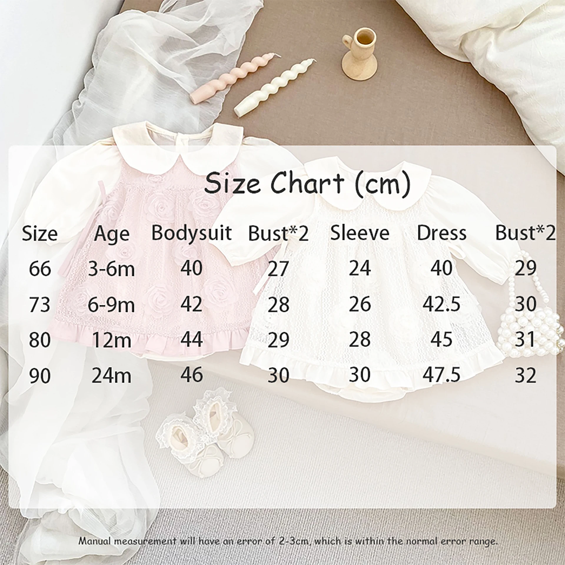 Comprar Conjunto de ropa de otoño para niñas pequeñas, 3D vestido sin mangas de flores, Body de cuello Peter Pan sólido, 2 piezas