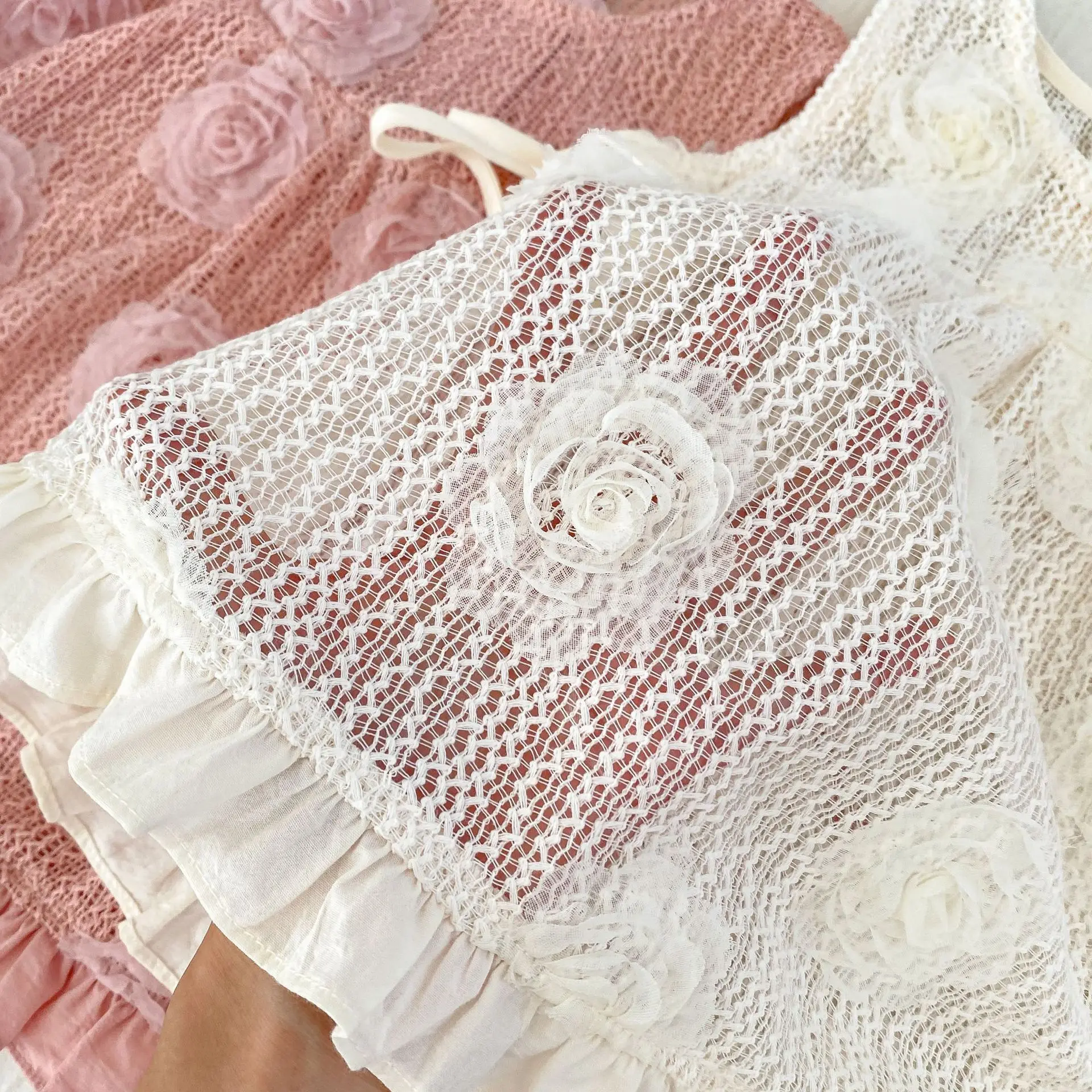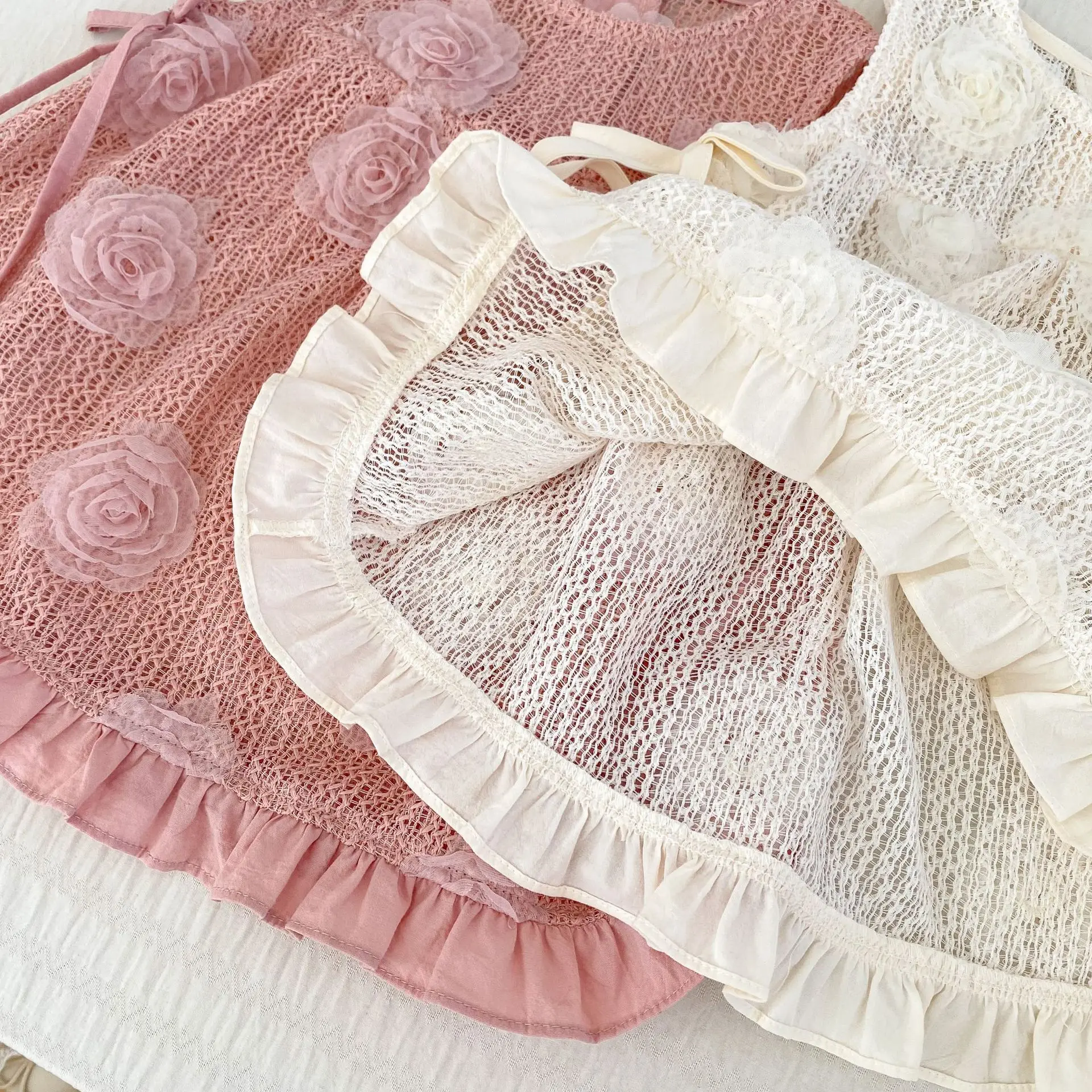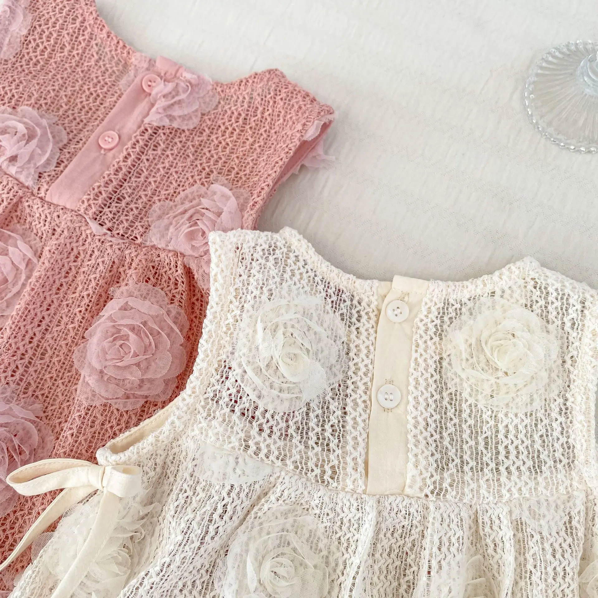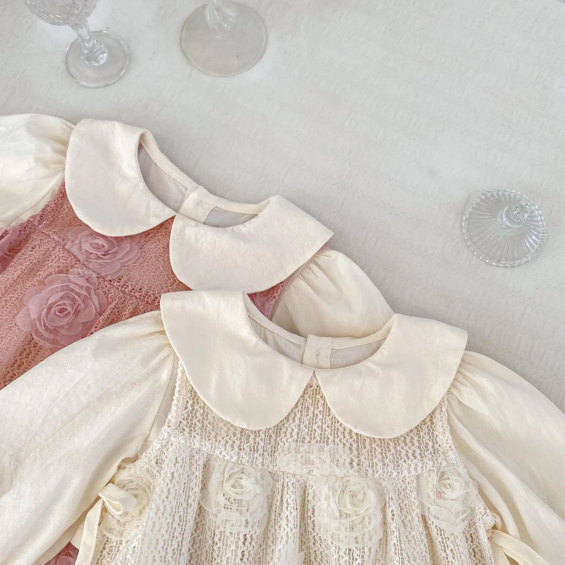 Comprar Conjunto de ropa de otoño para niñas pequeñas, 3D vestido sin mangas de flores, Body de cuello Peter Pan sólido, 2 piezas