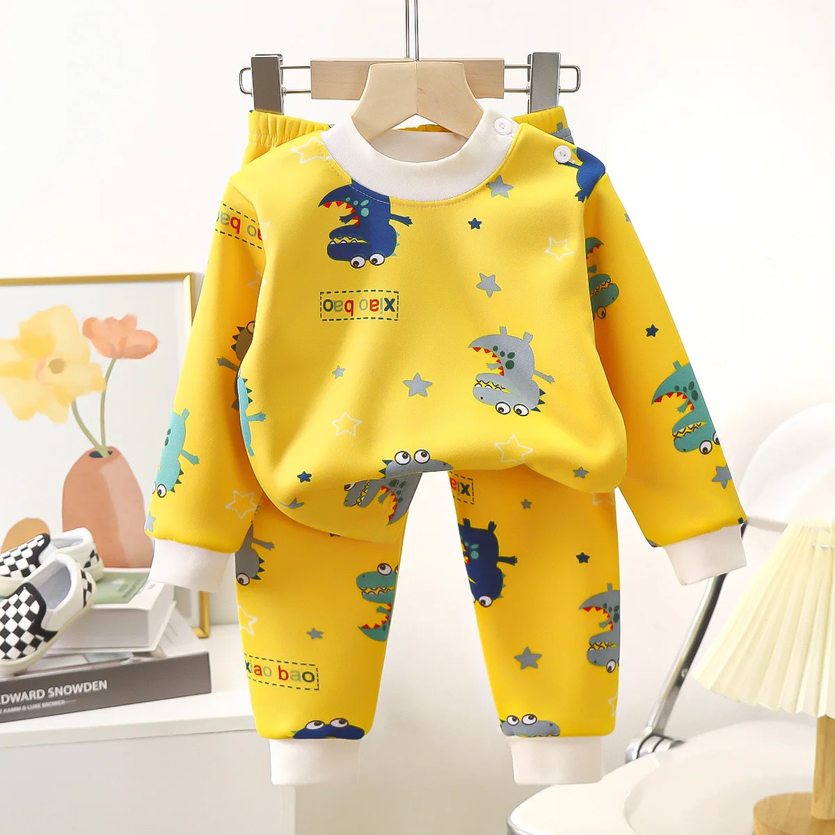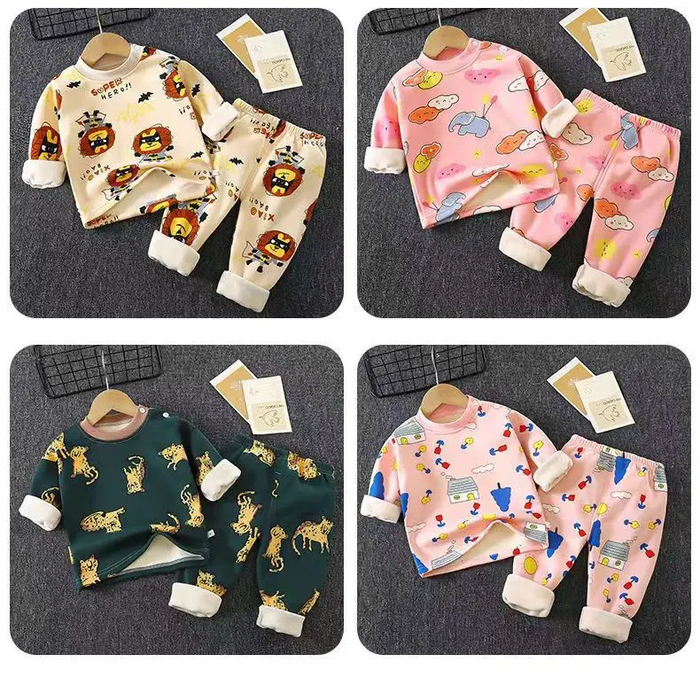 Conjunto de ropa de otoño para niños, pijamas para bebés, ropa para bebés, niños y niñas, ropa gruesa de Cachemira para el hogar para otoño e invierno