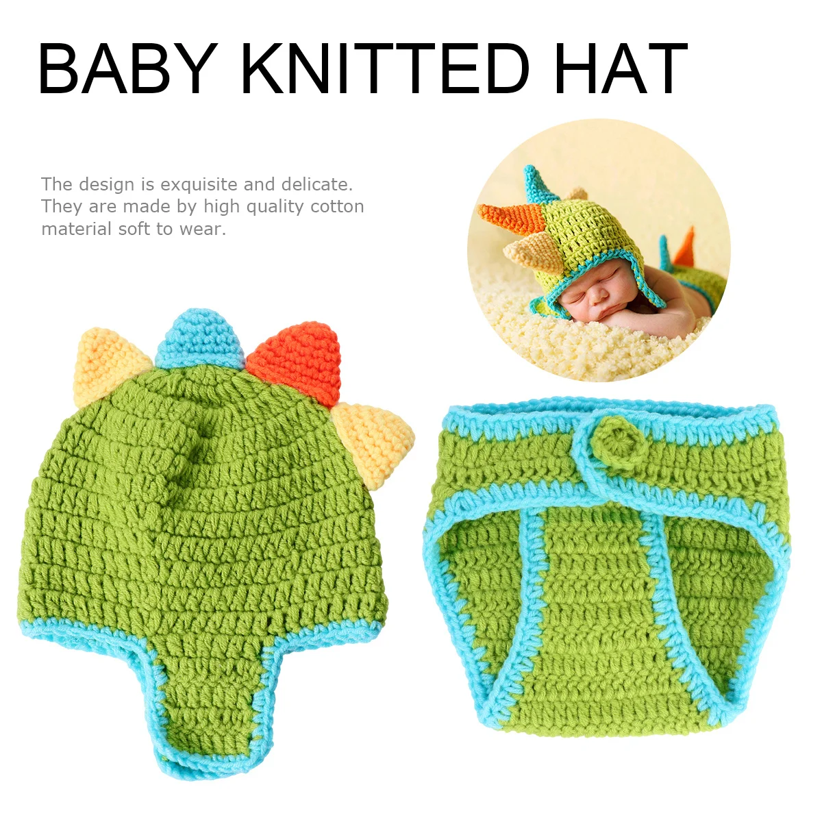 Conjunto de punto para recién nacido con diseño de dinosaurio, 100% algodón suave. Ropa cómoda y adorable con forma de dinosaurio, ideal para sesiones de fotos de bebés de 0 a 1 año.