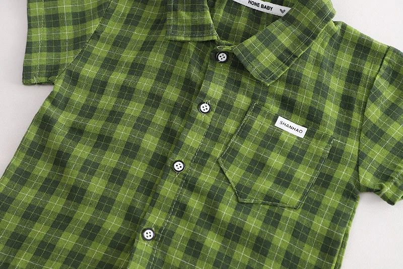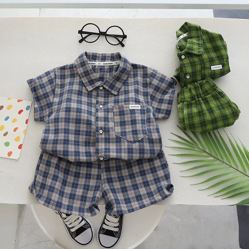 Nueva ropa de verano para bebés, traje para niños, camisa a cuadros, pantalones cortos, 2 unids/set, ropa infantil, disfraz informal para niños pequeños, chándales para niños de 0 a 5 años