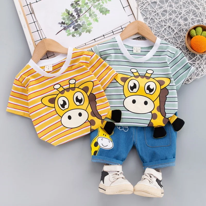 Camiseta de dibujos animados para bebés, pantalones cortos, 2 unids/set, ropa infantil a rayas, nuevos conjuntos de ropa de moda para niños de verano, ropa deportiva para niñas pequeñas de 0 a 5 años