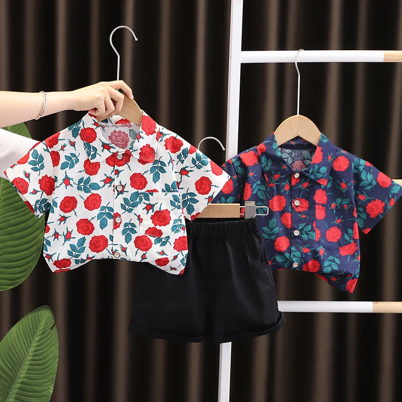 Nueva ropa de verano para bebés, traje para niños, camisa informal, pantalones cortos, 2 unids/set, trajes infantiles, disfraz deportivo para niños pequeños, chándales para niños de 0 a 5 años