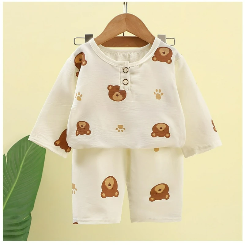 Conjunto de ropa de verano para el hogar, manga media, niños y niñas, algodón de nube, ropa de dormir informal ligera y con aire acondicionado con pantalones cortos