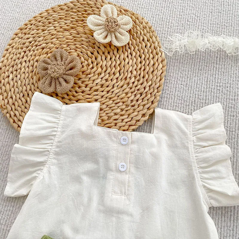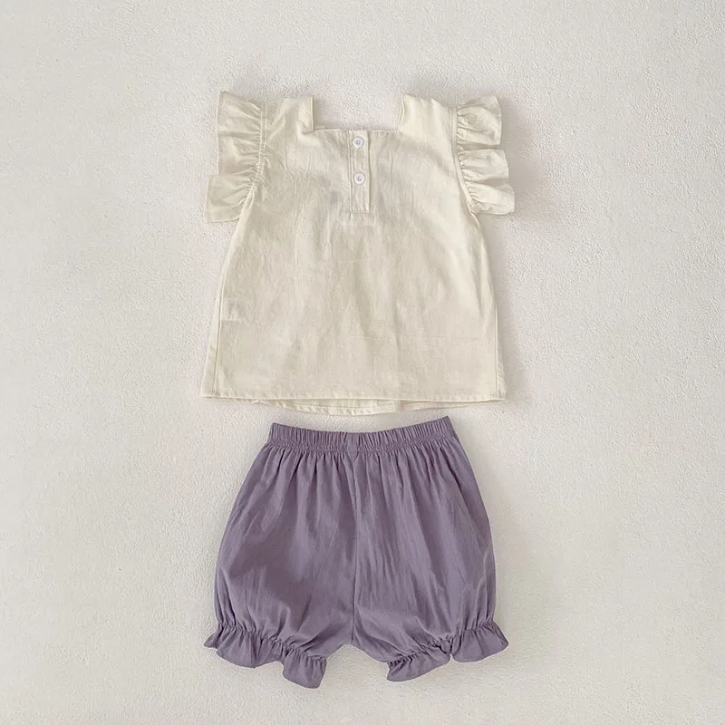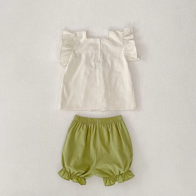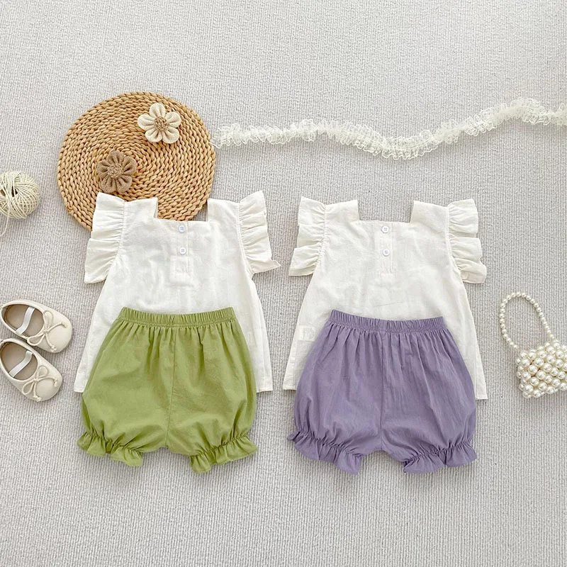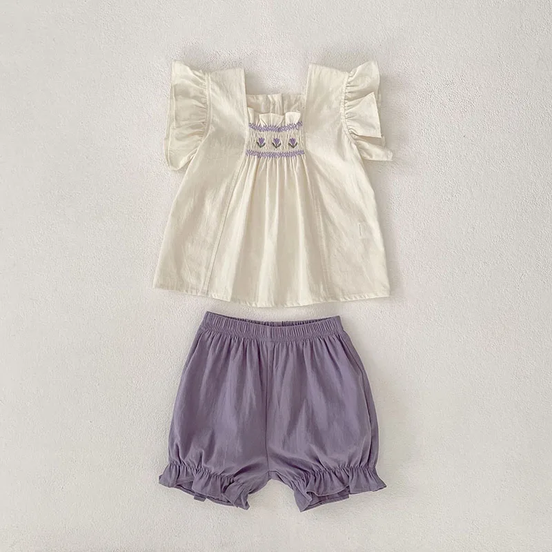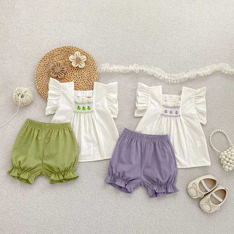 Conjunto de ropa de verano para niñas pequeñas, camisa y pantalones cortos con bordado de flores para niñas de 0 a 24 meses, traje fino y cómodo, 2 uds.