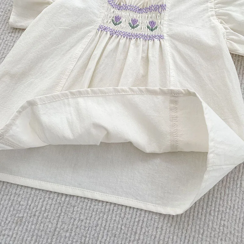 Conjunto de ropa de verano para niñas pequeñas, camisa y pantalones cortos con bordado de flores para niñas de 0 a 24 meses, traje fino y cómodo, 2 uds. - imagen 5
