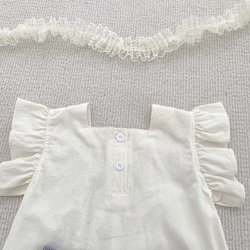 Conjunto de ropa de verano para niñas pequeñas, camisa y pantalones cortos con bordado de flores para niñas de 0 a 24 meses, traje fino y cómodo, 2 uds. - imagen 3