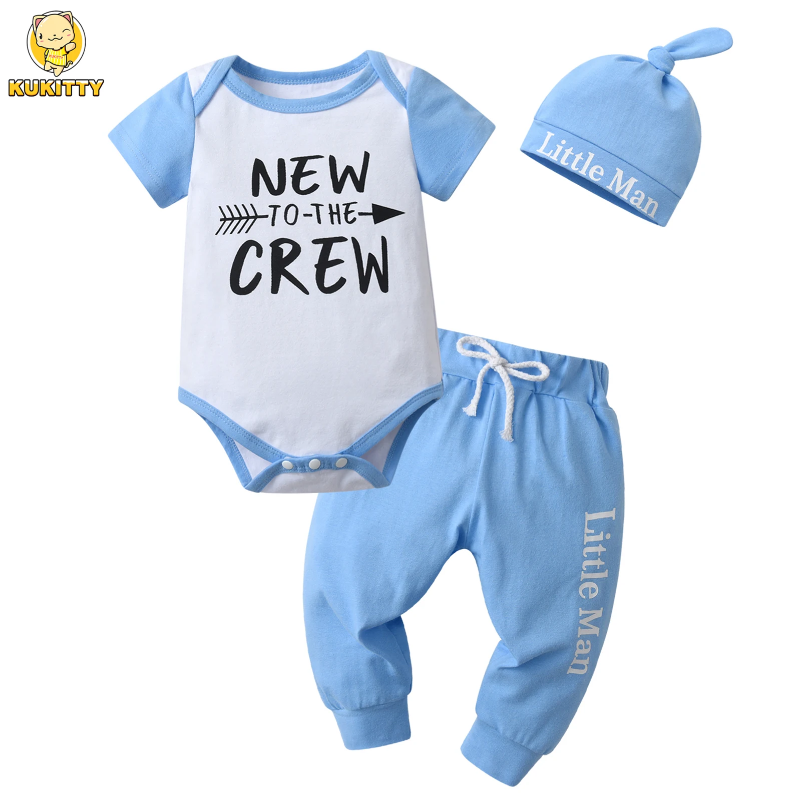 Comprar Conjunto de ropa de verano para recién nacido, Pelele de manga corta, Top y pantalones largos con sombrero, traje de 3 piezas