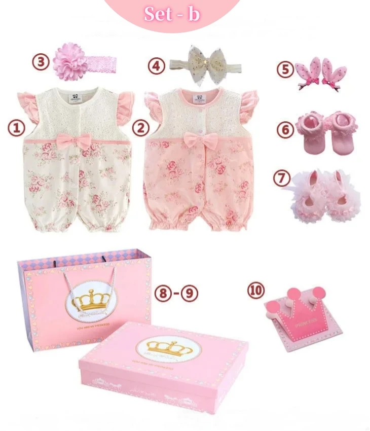 : 1.Descripción del grosor: este párrafo es un vestido fino de verano. 2.Tela: la tela de la ropa es 93% algodón + 7% spandex, la diadema de los calcetines 80% algodón es encaje + gasa, los zapatos no son algodón 3. Descripción de la marca: Dos estilos diferentes de ropa en la caja.