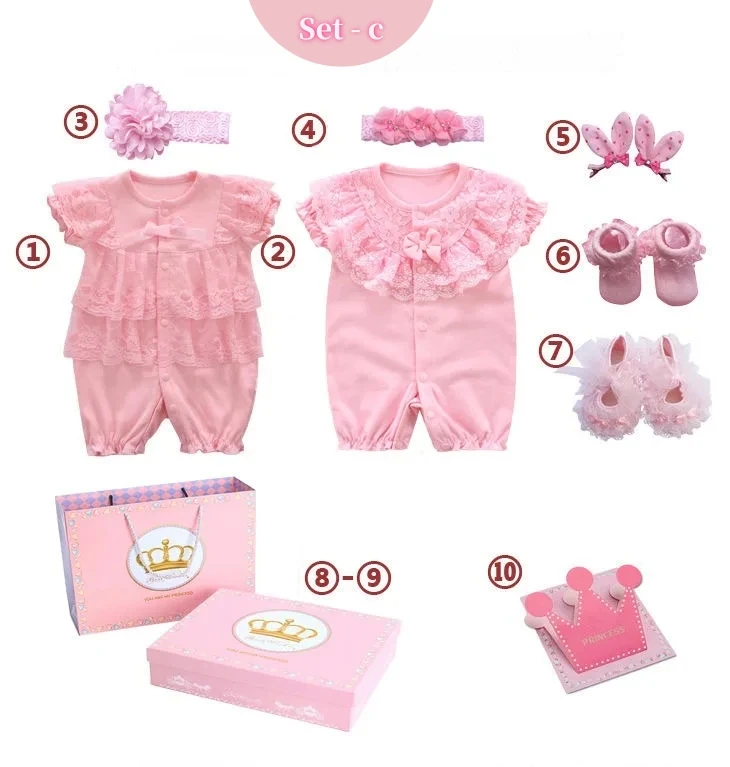 Conjunto rosa de verano para bebé, mono con estampado bonito para niña, conjunto de ropa de abrigo combinada de varias piezas, pelele para niña de 3 a 12 meses