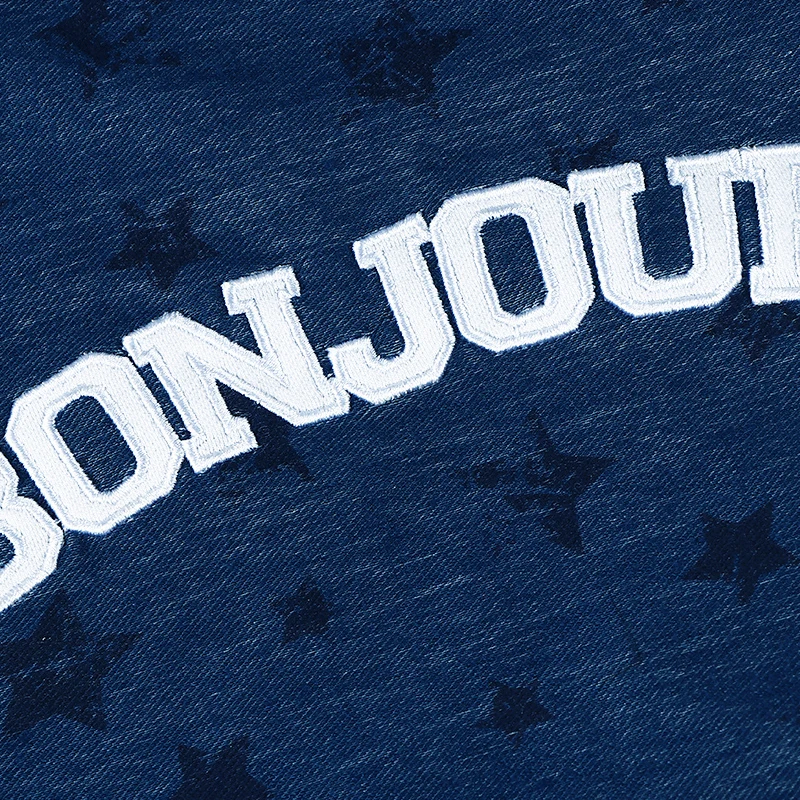Denim azul con estampado de estrellas.