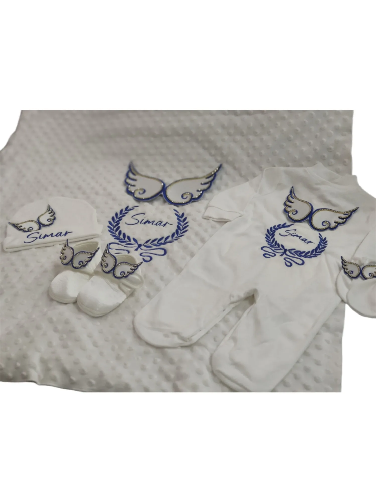Conjunto de traje de ángel para bebé, color azul, blanco y dorado, ropa para recién nacido estilo Príncipe para uso diario, sesión de fotos, bautismo