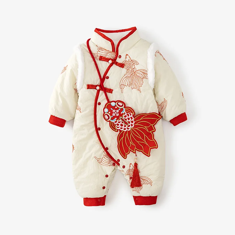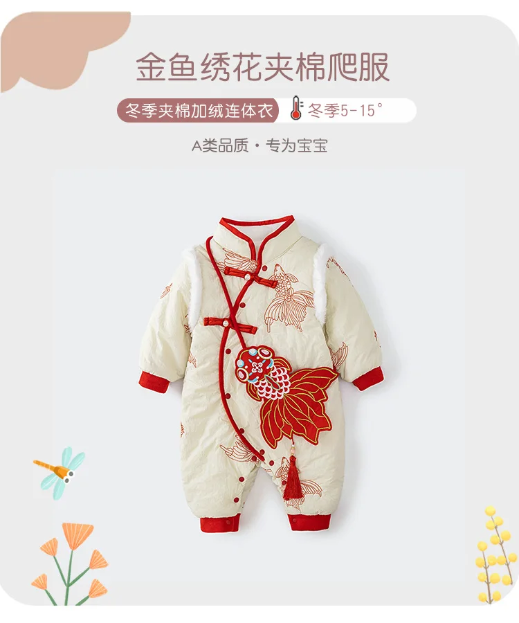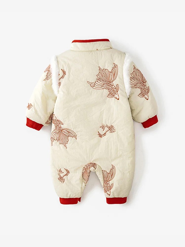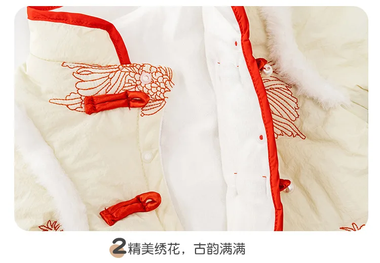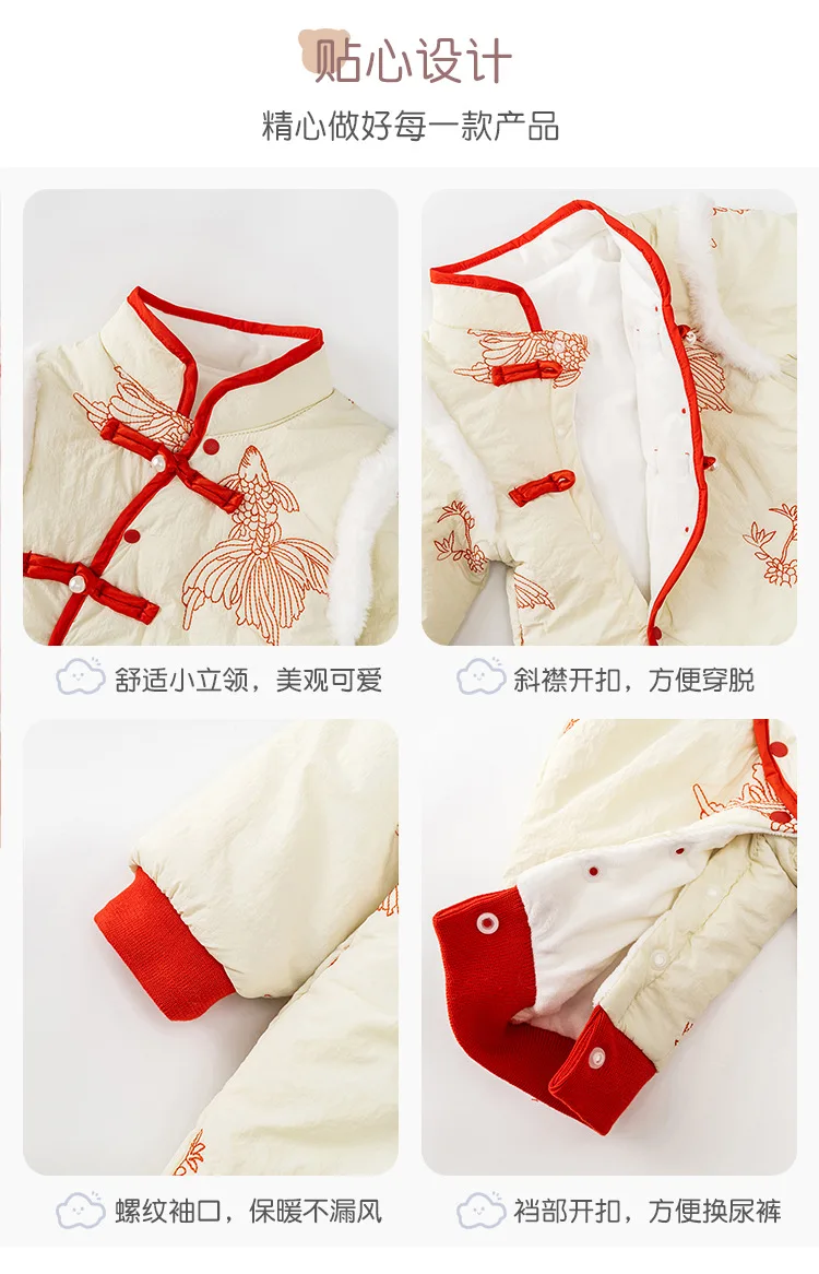 Conjuntos de 2 piezas de peleles de invierno, ropa para niñas recién nacidas, monos gruesos cálidos de algodón bonitos de estilo chino + bolsa, ropa de Boutique para bebés BC751
