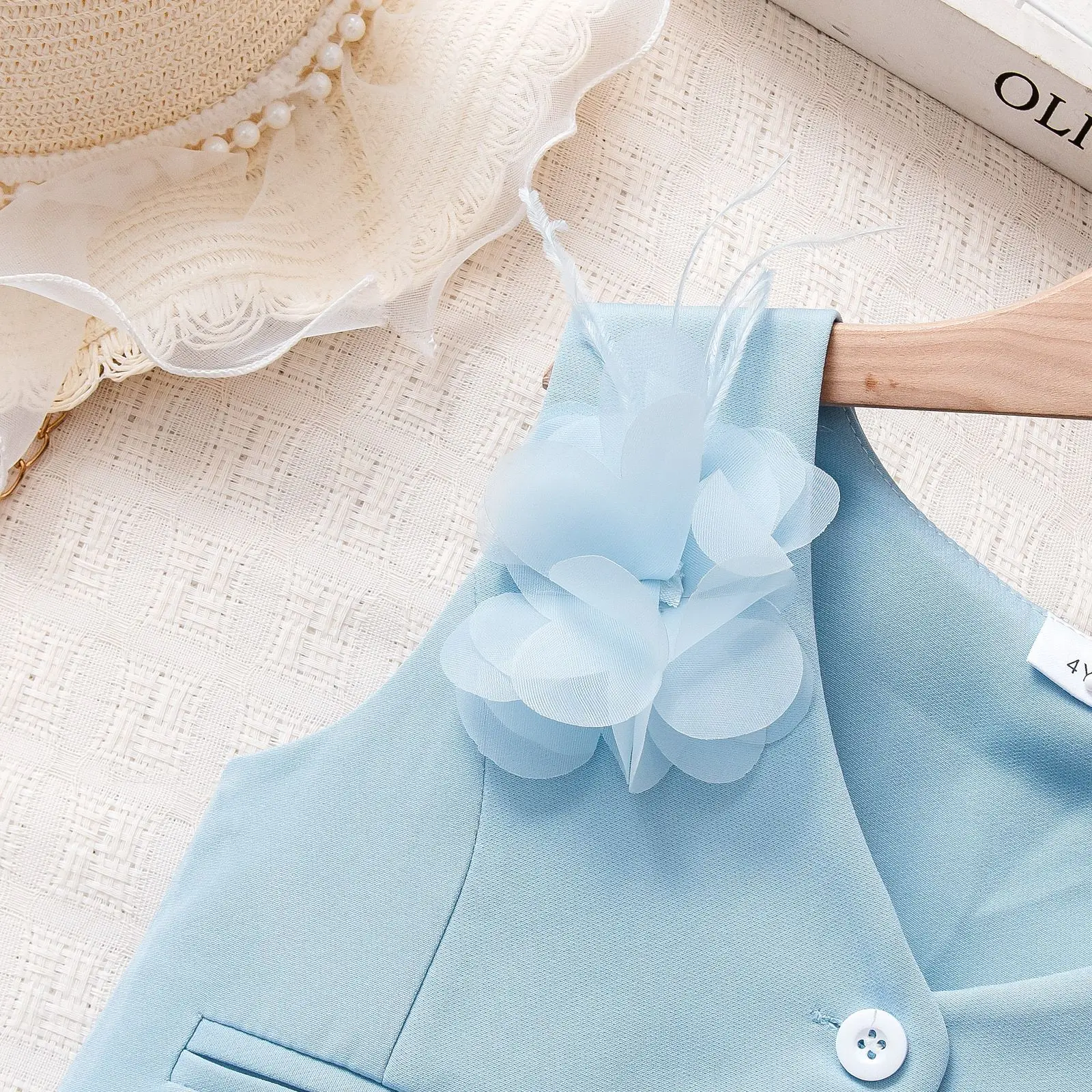 Conjuntos de 2 piezas de ropa de verano para niña, Tops de algodón sin mangas con flores sólidas a la moda coreana + Pantalones sueltos, ropa de Boutique para niños B063