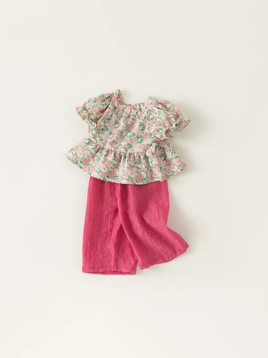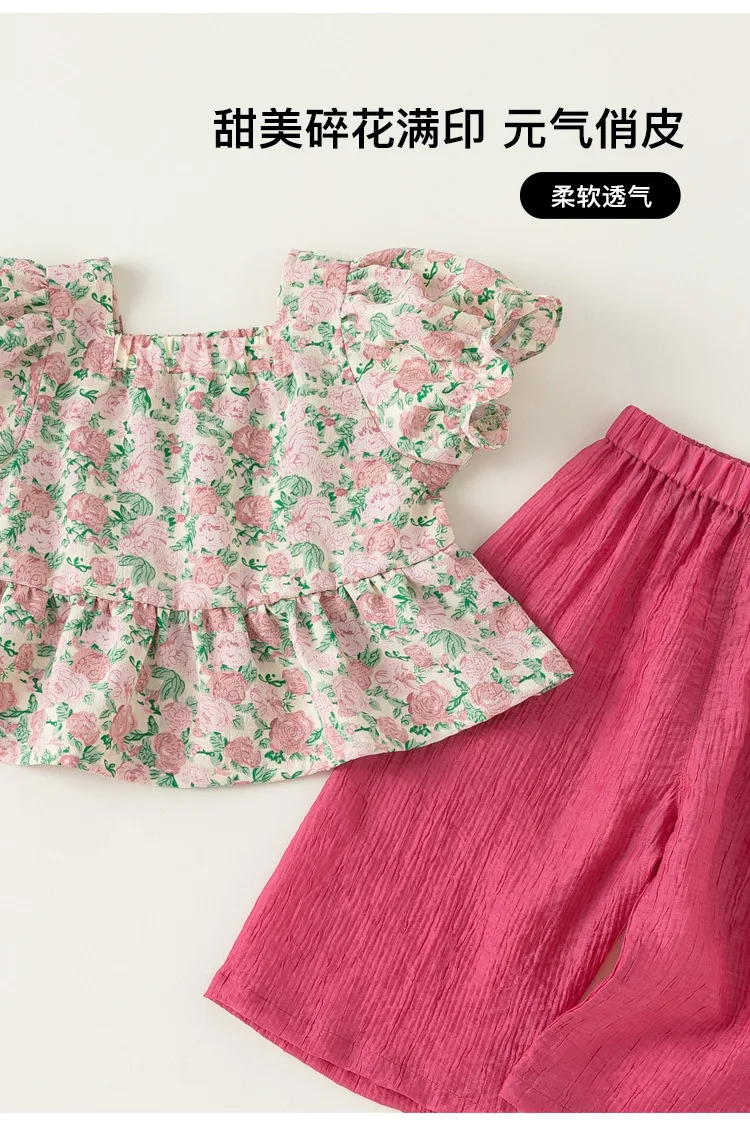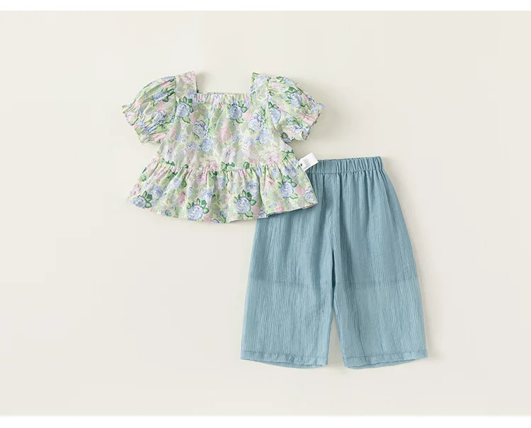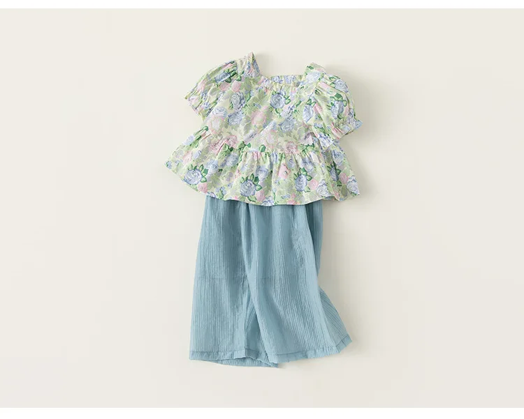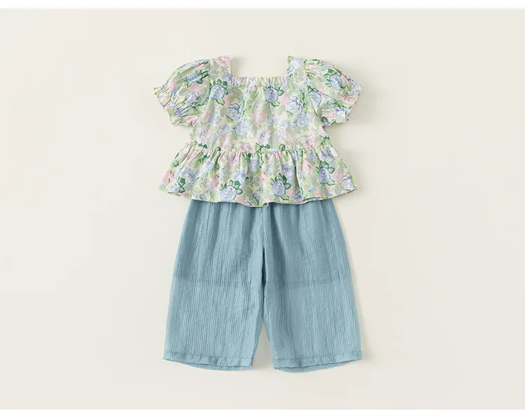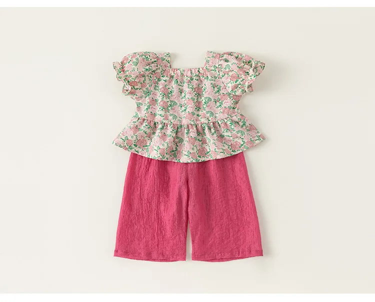 Conjuntos de 2 piezas de ropa de verano para niña, Tops de manga corta con flores bonitas a la moda de estilo chino + Pantalones sueltos, ropa de Boutique para niños B156