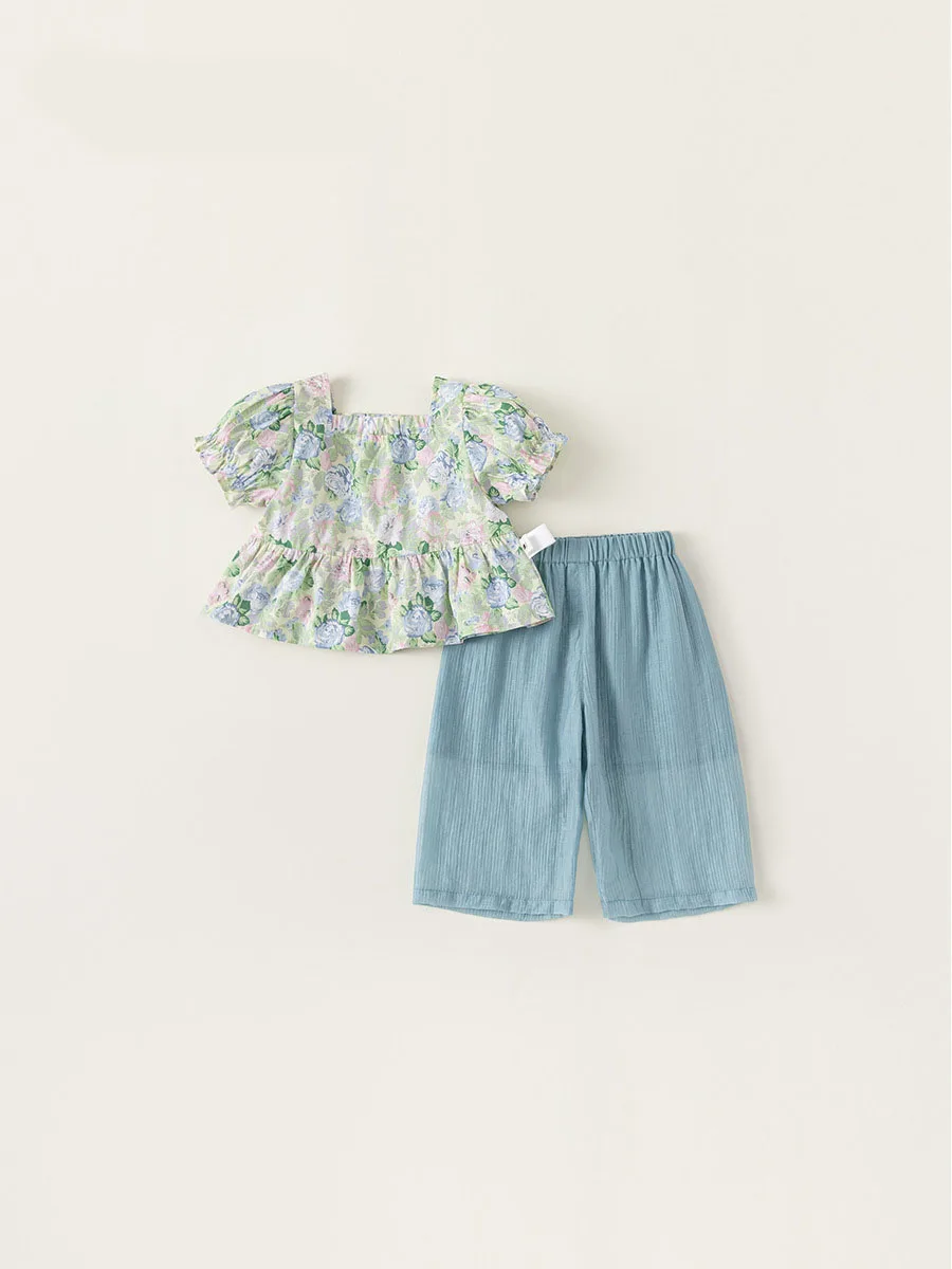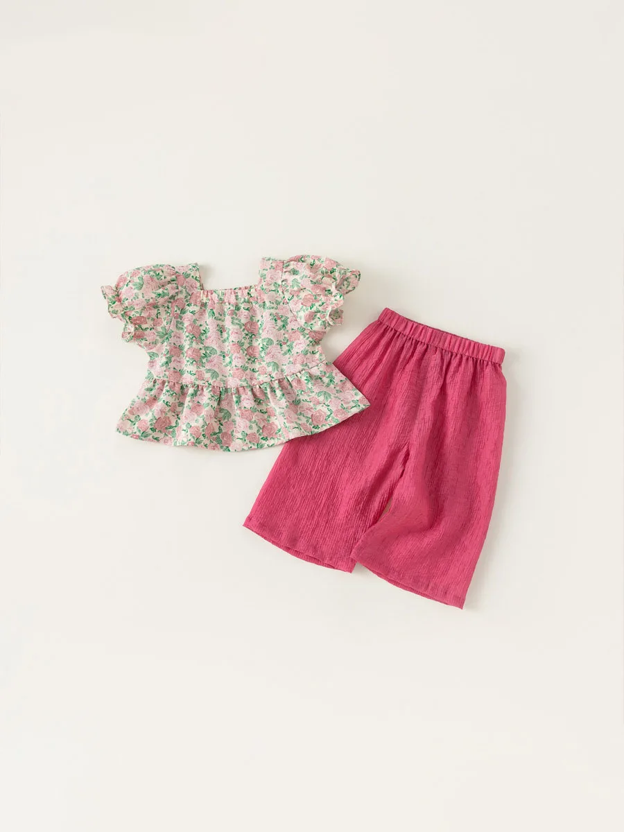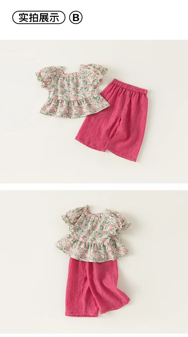 Conjuntos de 2 piezas de ropa de verano para niña, Tops de manga corta con flores bonitas a la moda de estilo chino + Pantalones sueltos, ropa de Boutique para niños B156