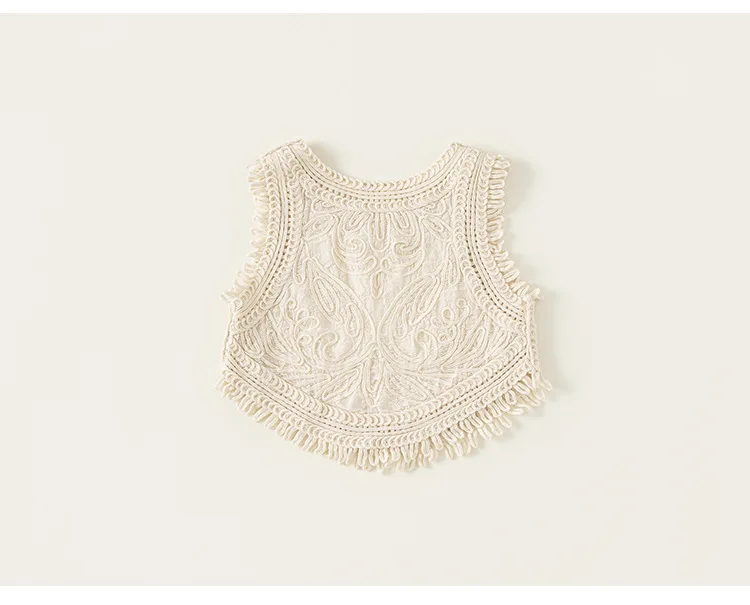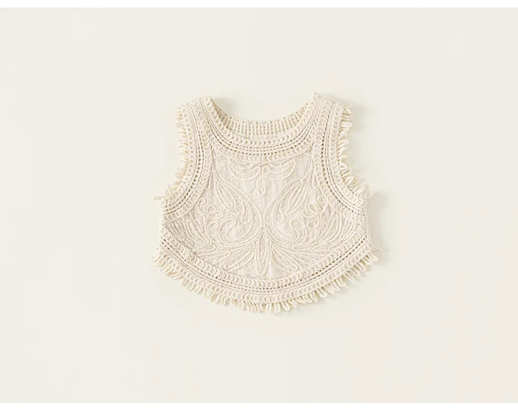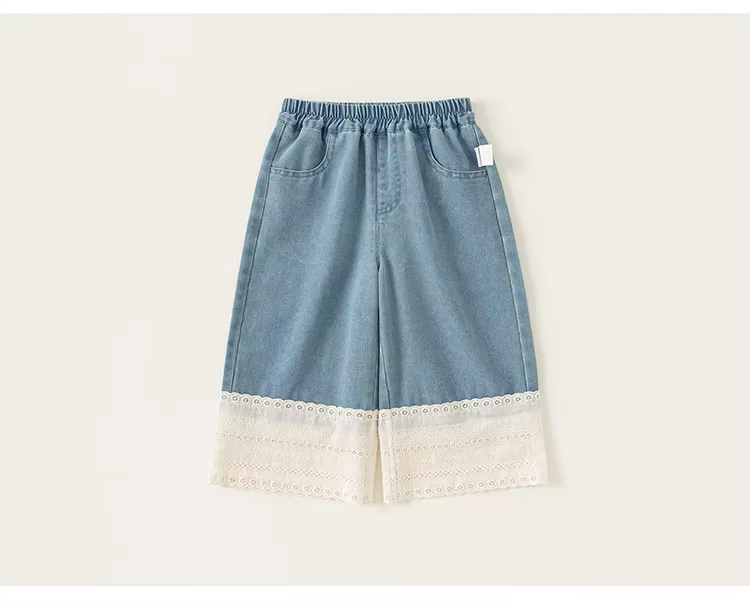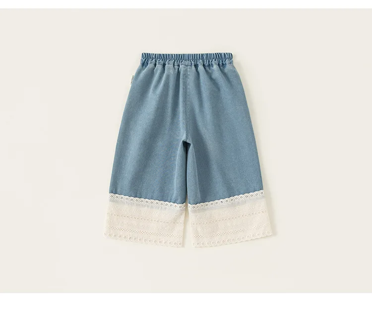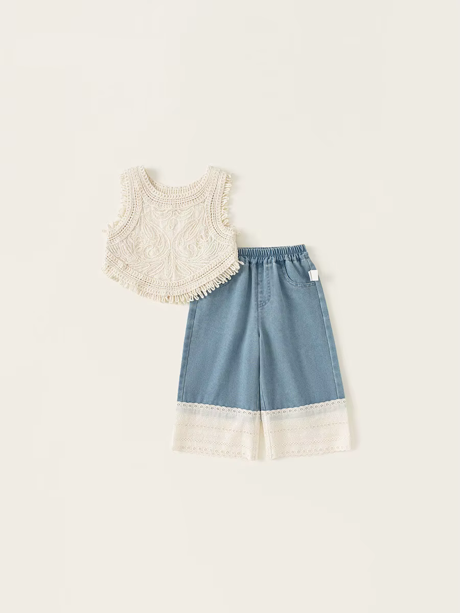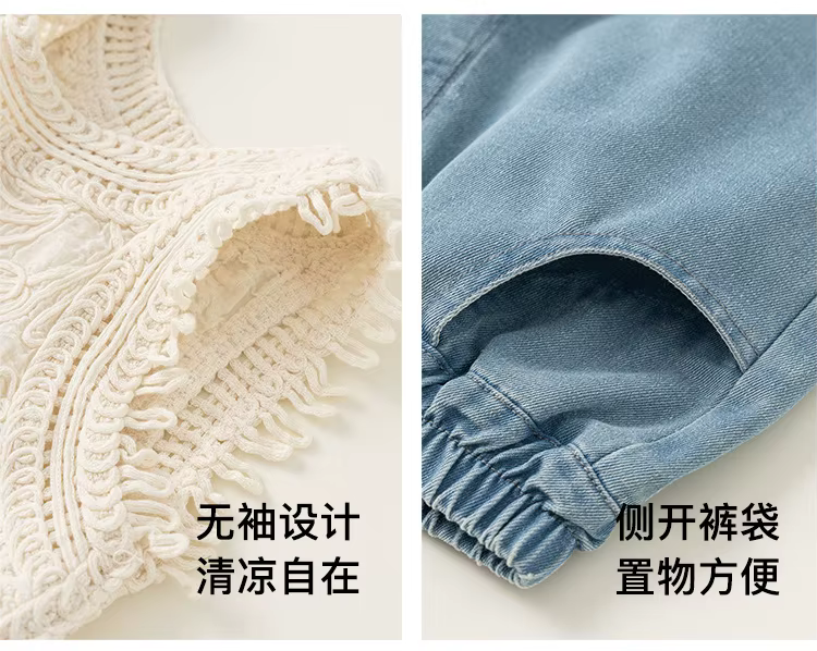 Comprar Conjuntos de 2 piezas de ropa de verano para niña, Tops sin mangas de algodón con encaje a la moda coreana + pantalones vaqueros holgados con empalme, ropa de Boutique para niños B098