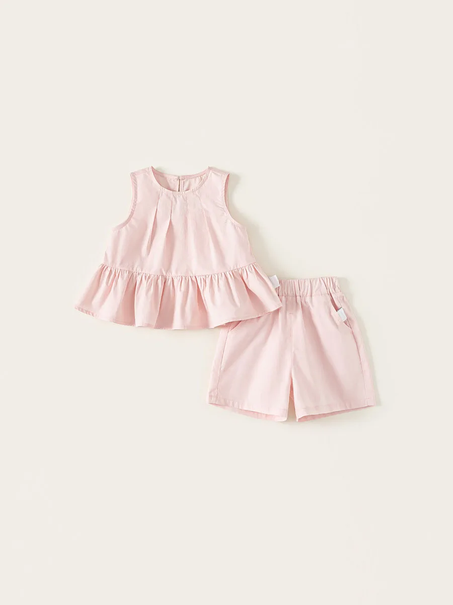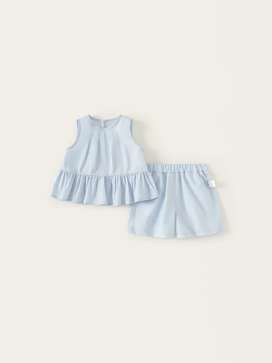 Conjuntos de 2 piezas de ropa de verano para niñas, moda coreana, Tops lisos sin mangas para bebés + Pantalones cortos sueltos, ropa de Boutique para niños B168