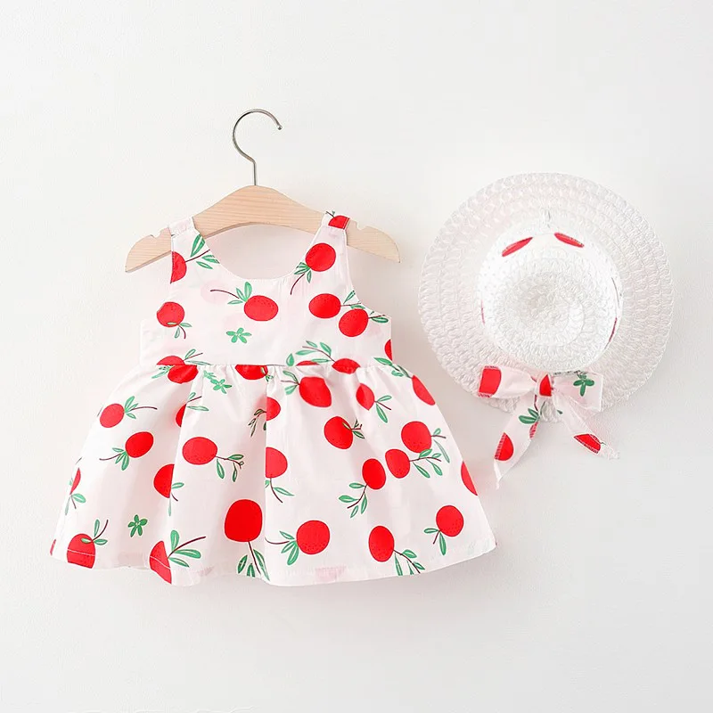 Comprar Conjuntos de 2 piezas de ropa de verano para niñas recién nacidas, moda coreana, bonito vestido de princesa sin mangas con lazo estampado + sombrero para el sol, vestidos para niños BC145