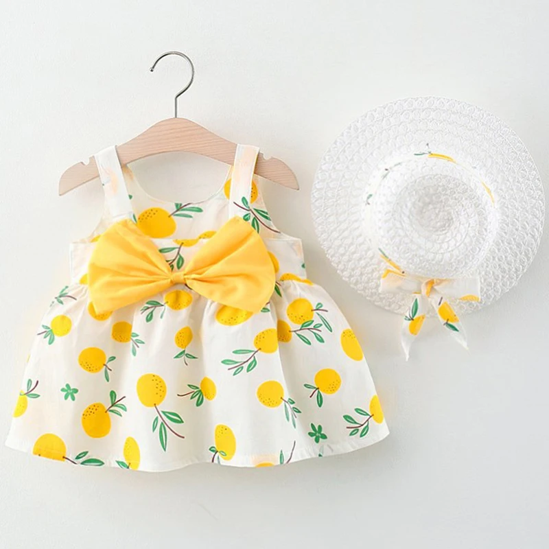Comprar Conjuntos de 2 piezas de ropa de verano para niñas recién nacidas, moda coreana, bonito vestido de princesa sin mangas con lazo estampado + sombrero para el sol, vestidos para niños BC145