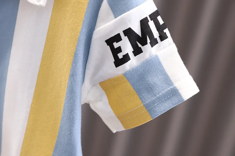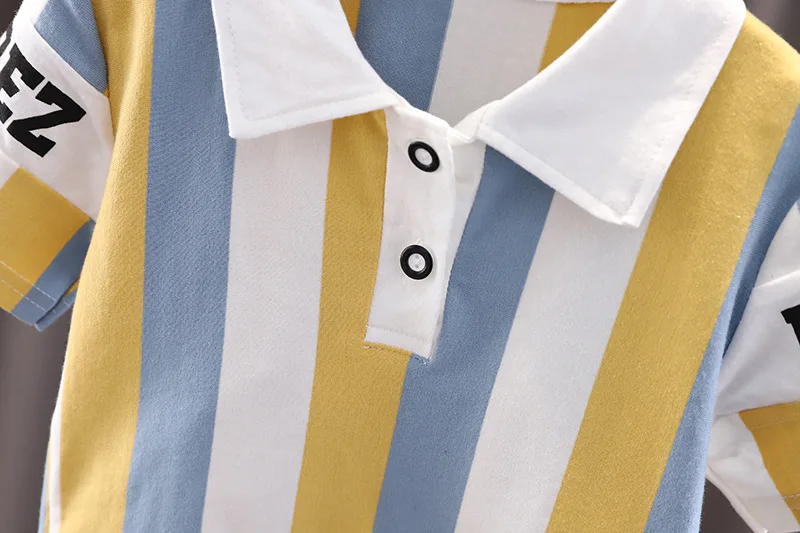 Conjuntos de 2 piezas de ropa de verano para niño pequeño, moda coreana, Tops de algodón de manga corta con letras a rayas y pantalones cortos para bebé, ropa para niño B194 2025
