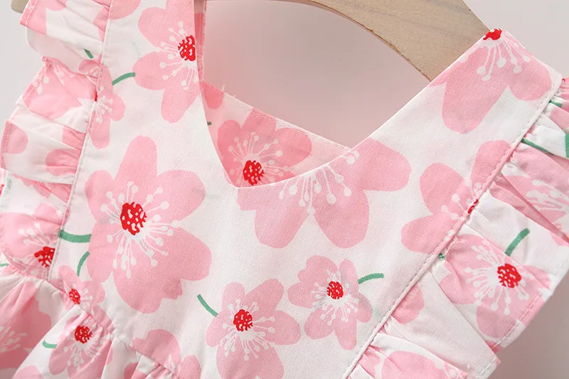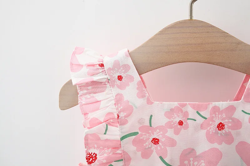 Conjuntos de 2 piezas de vestidos de verano para niñas, moda coreana, vestido rosa sin mangas bonito de princesa para bebés, vestido de flores + sombrero para el sol, ropa para recién nacidos BC185