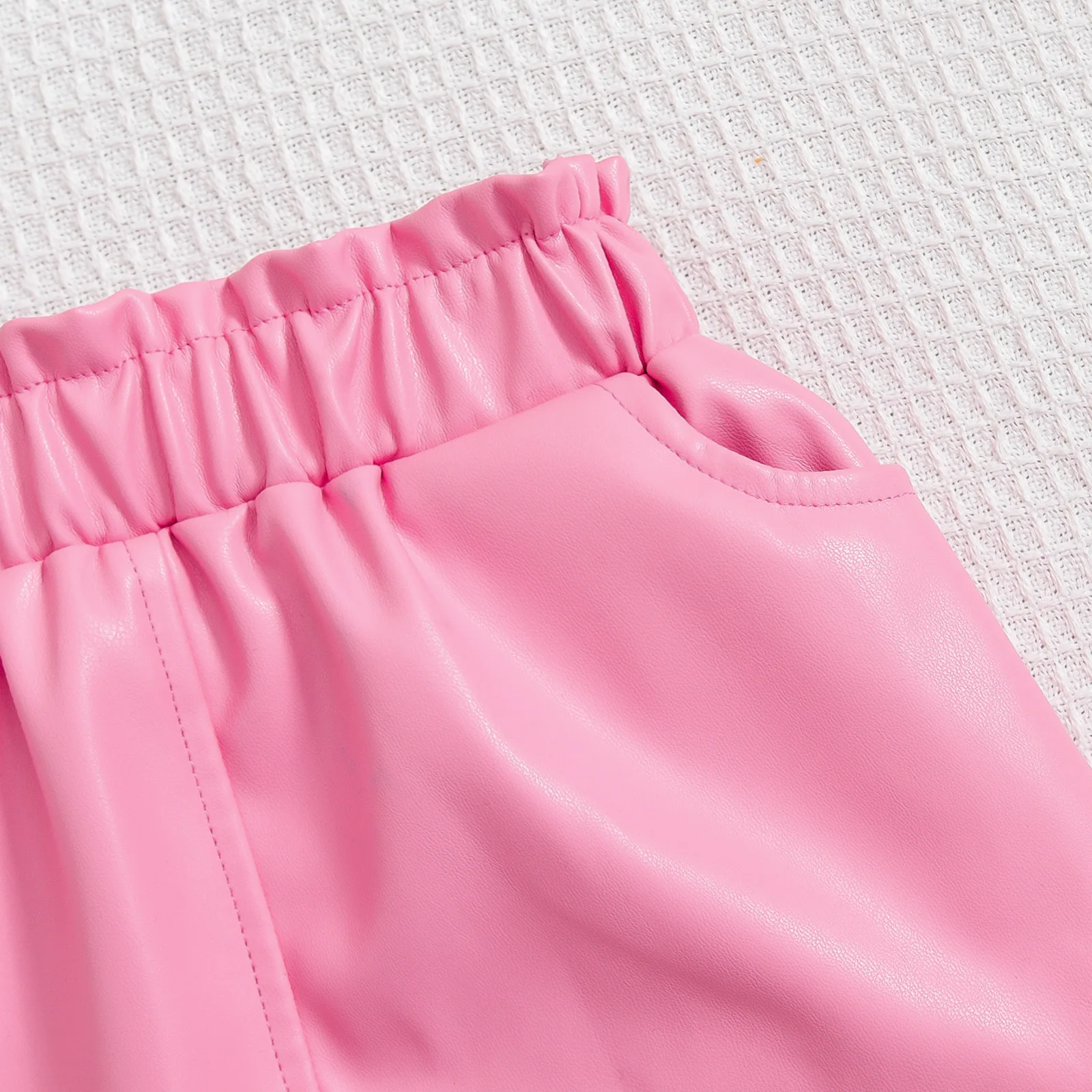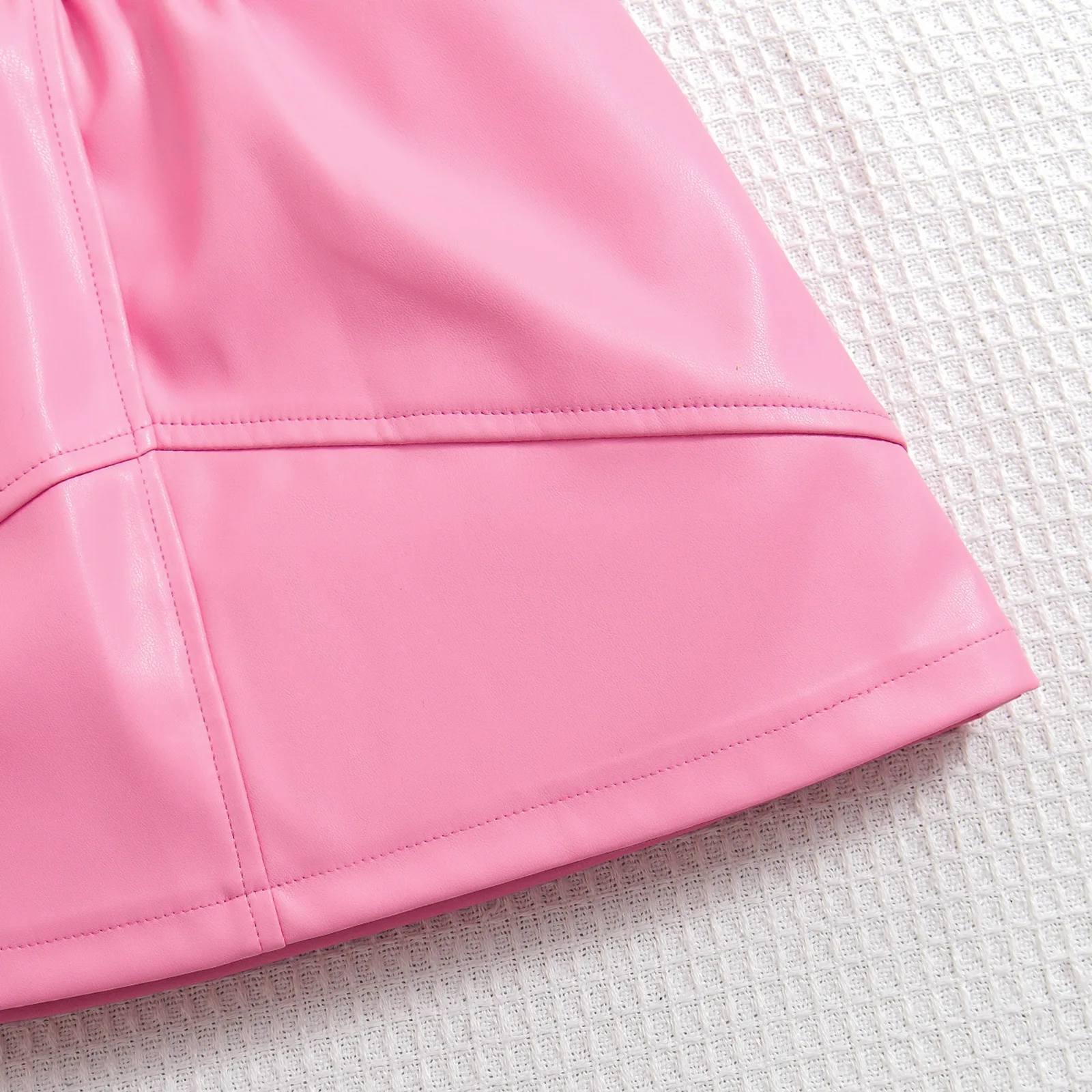 Conjuntos de 2 uds para niños, ropa de otoño para niñas, Tops blancos de manga larga con cuello alto + falda de PU, ropa de Boutique para bebés BC565