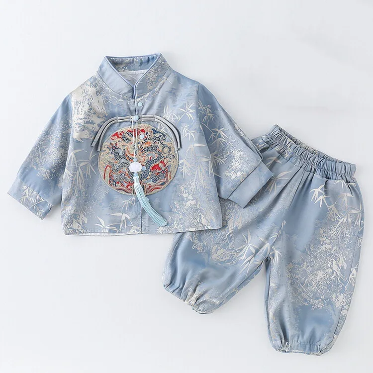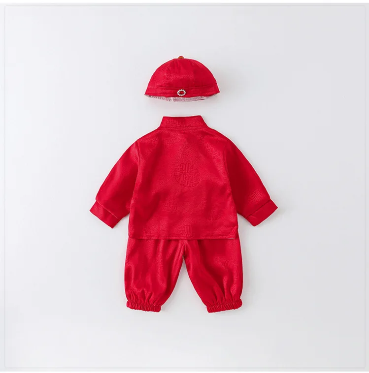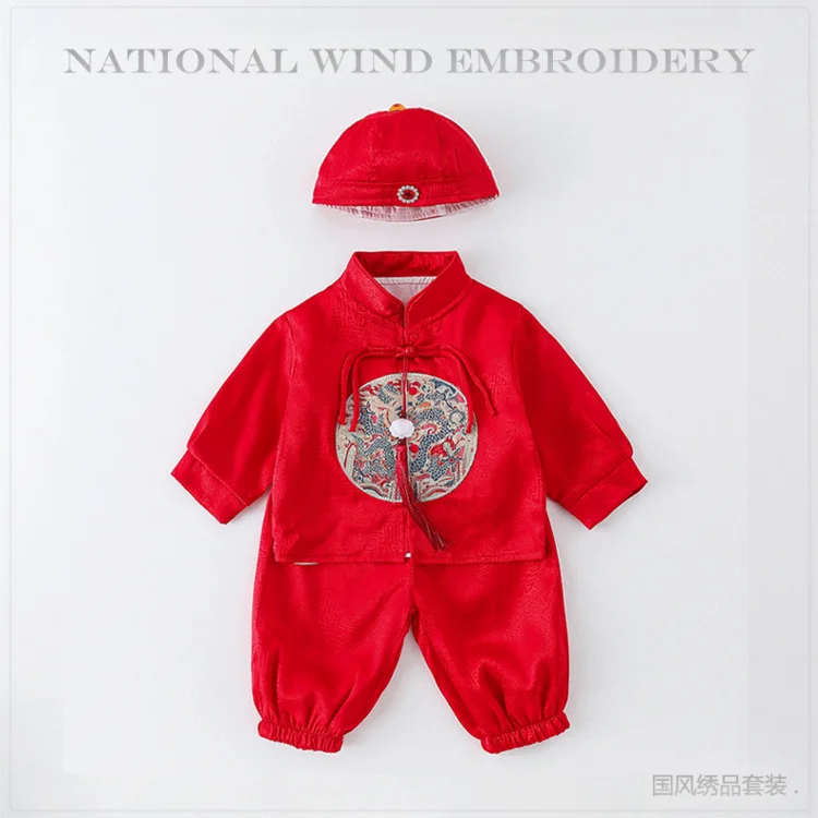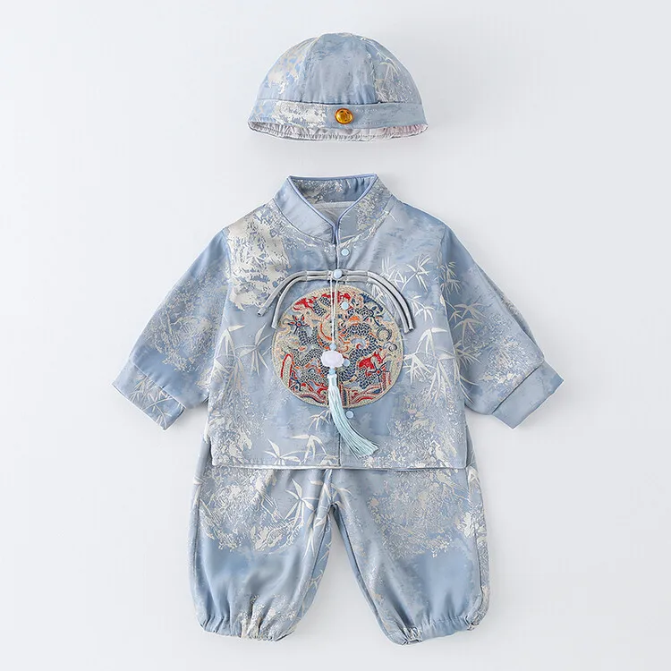 Conjuntos de 3 piezas de ropa de Boutique para bebé, ropa de estilo chino, Tops de manga larga de algodón, pantalones y sombrero, fotografía para recién nacido BC157