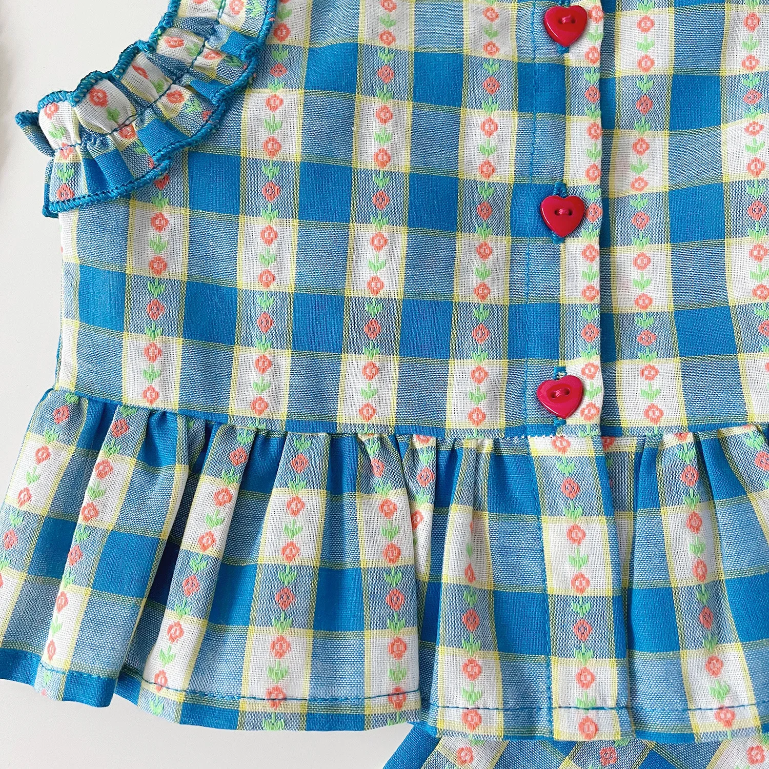 Comprar Conjuntos de 3 piezas de ropa de verano para niño niña, moda coreana a cuadros sin mangas, Tops azules para bebé, pantalones cortos y pantalones, ropa de Boutique para niños B072