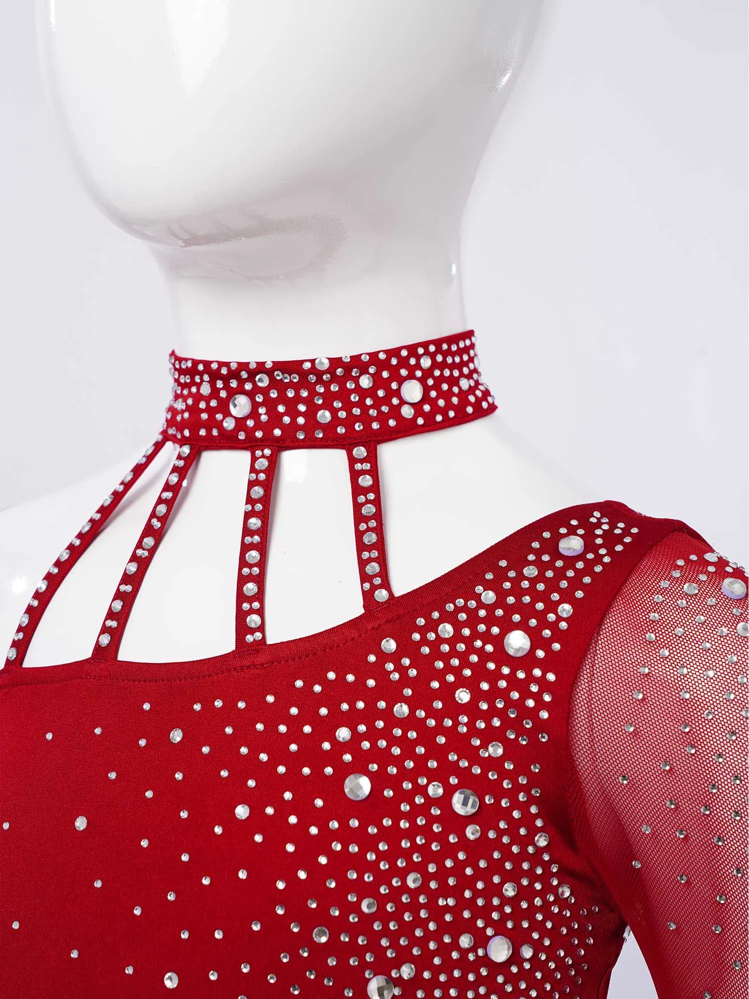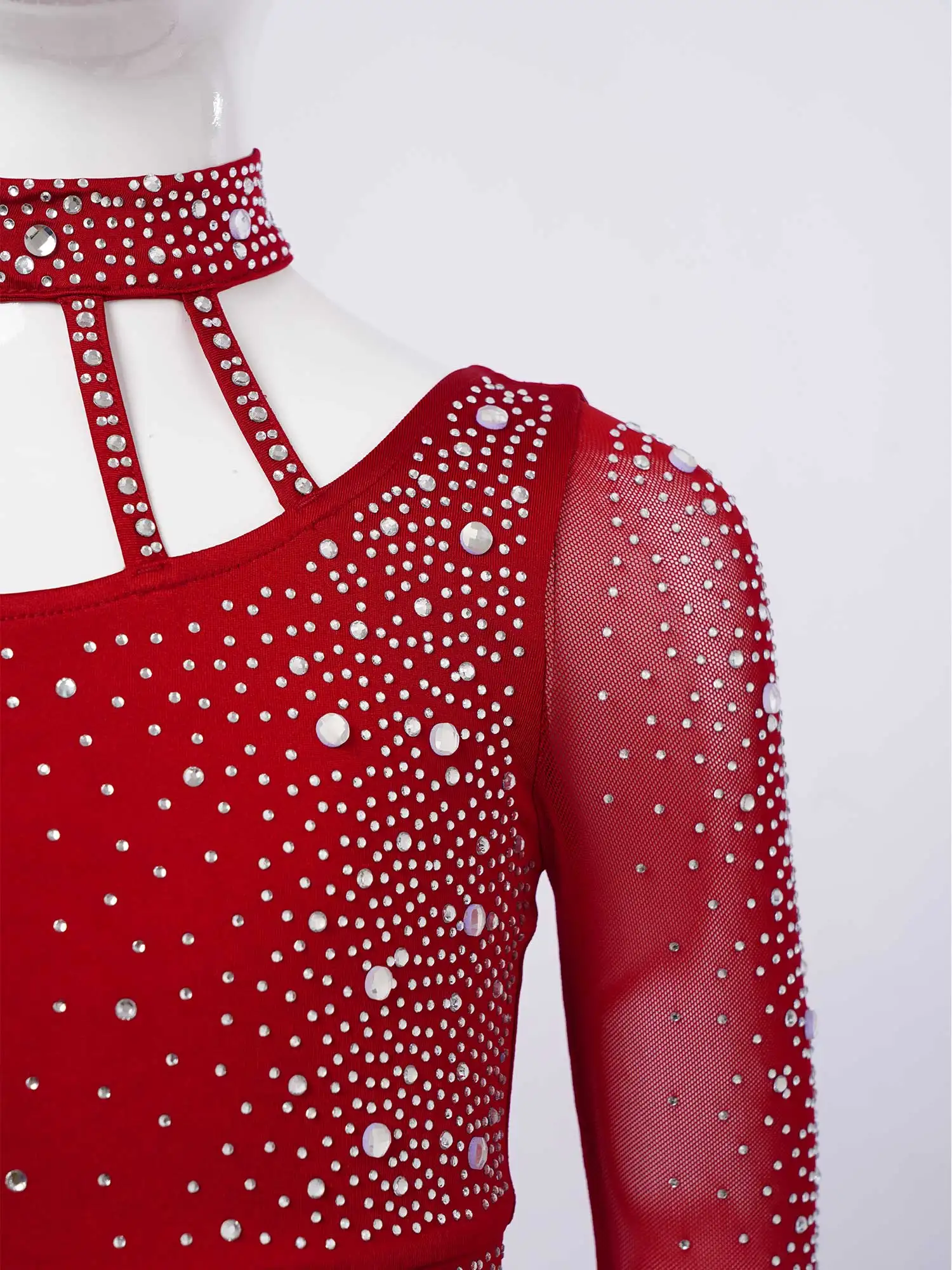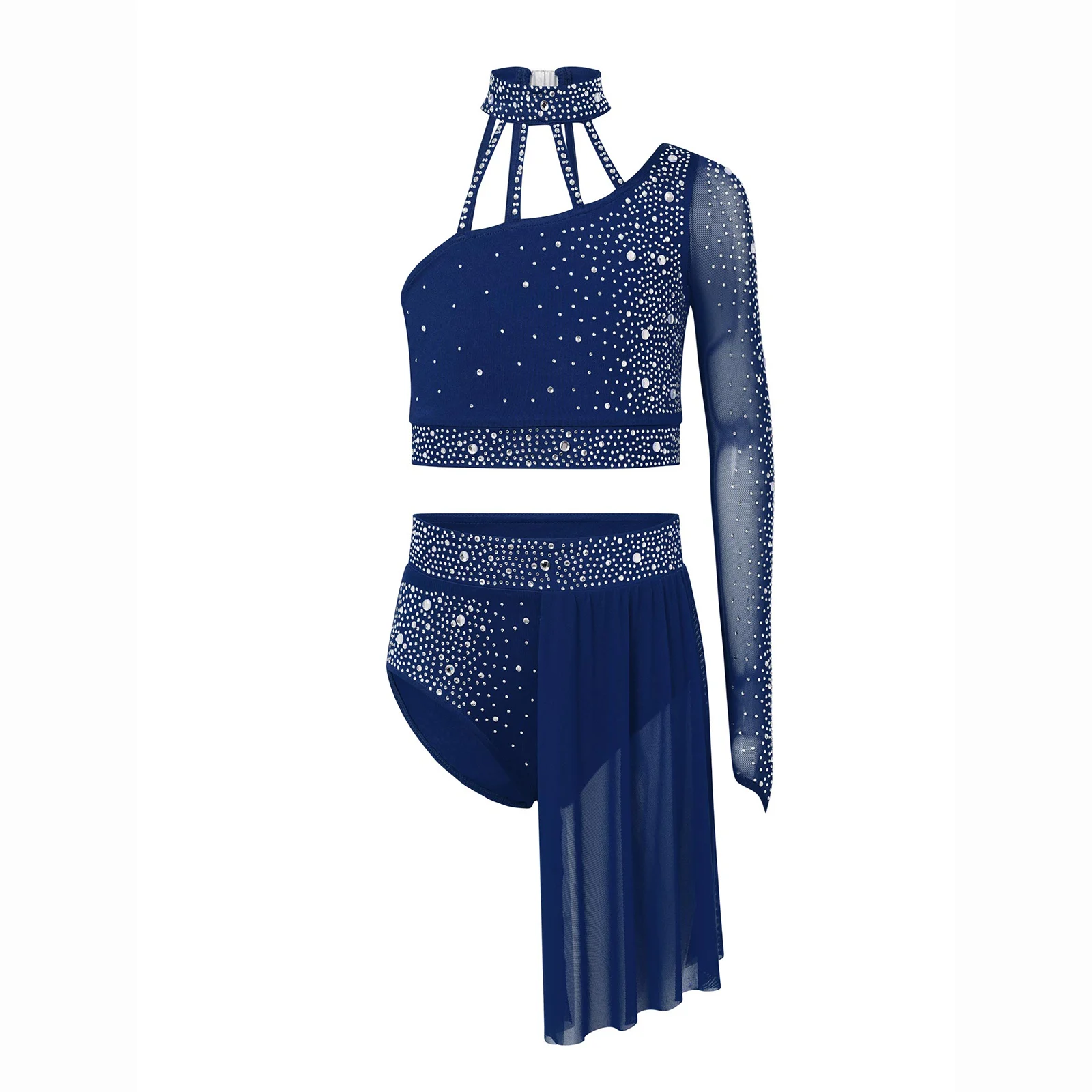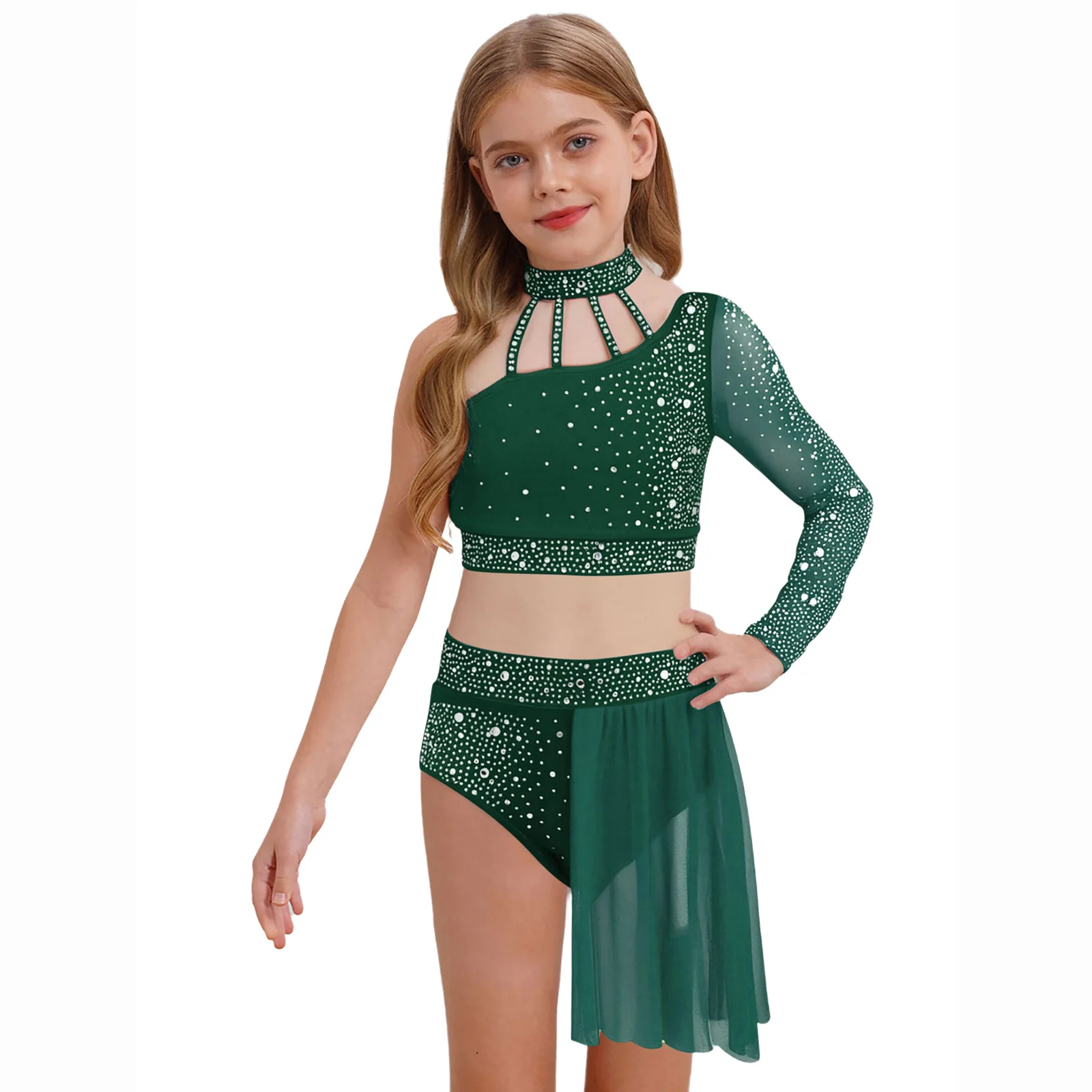 Top corto de un hombro con diseño de tiras y manga larga de malla transparente, elegante y único, hace que su hijo se destaque entre la multitud.