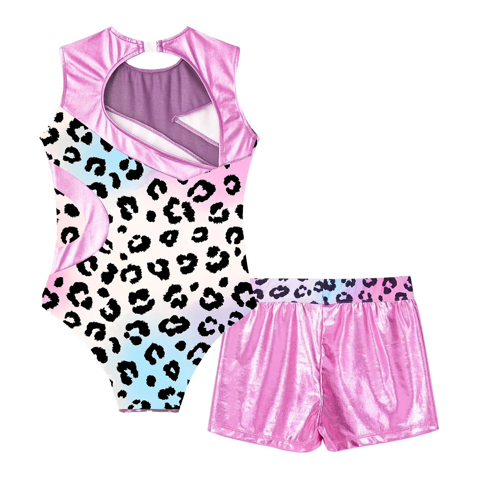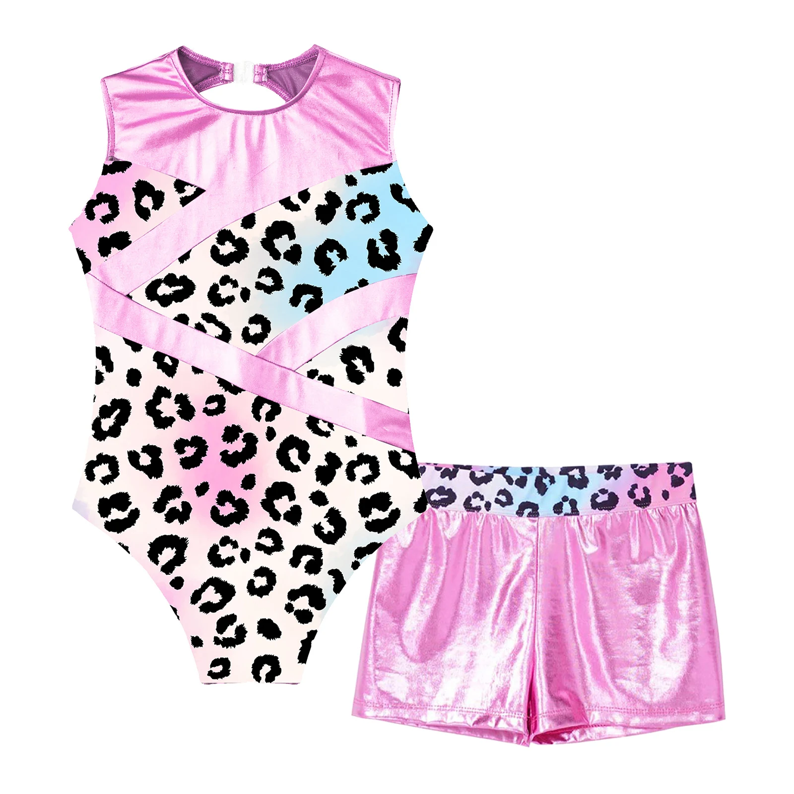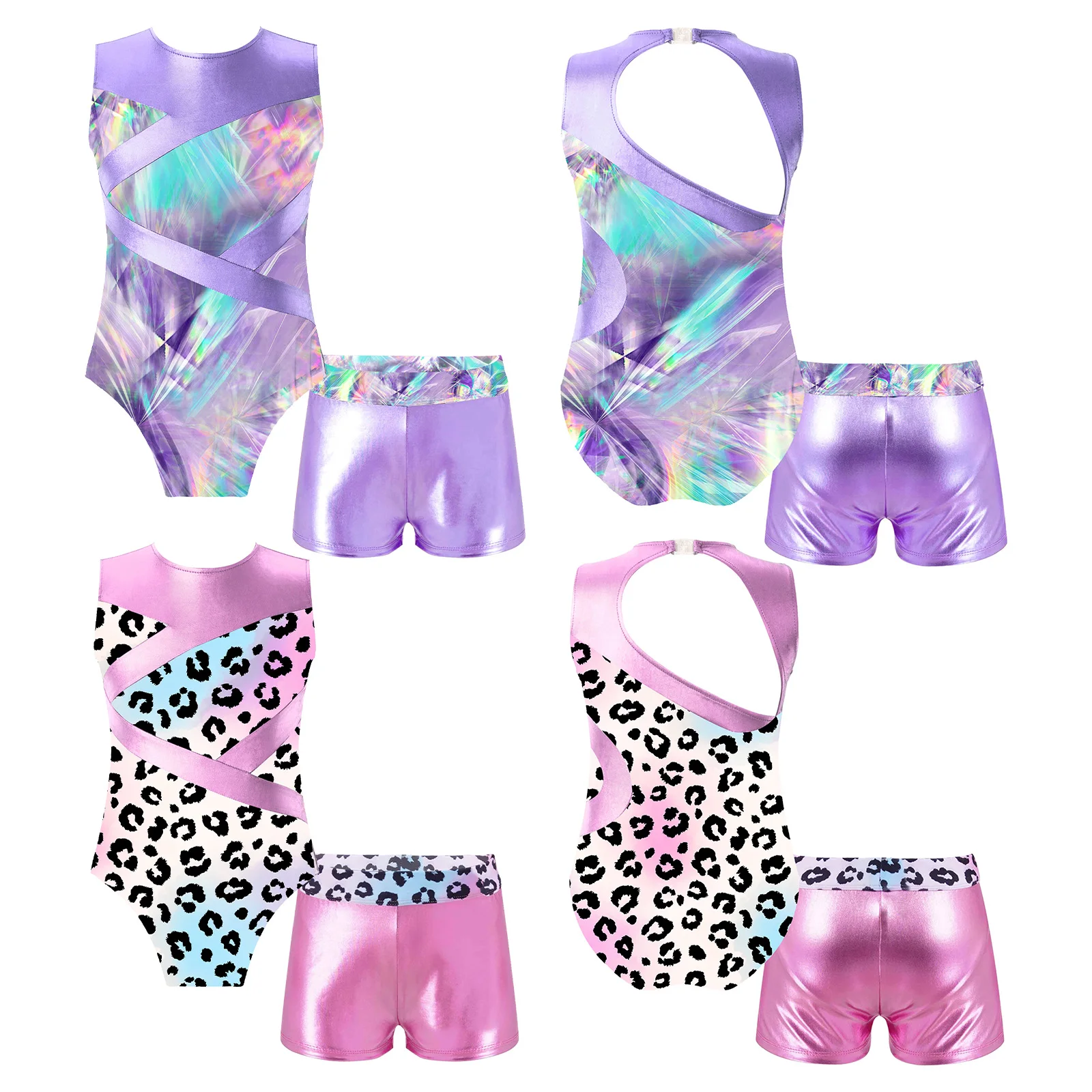 Comprar Conjuntos de baile de Ballet para niños y niñas, leotardo de retales con estampado calado sin mangas y pantalones cortos para gimnasia, entrenamiento deportivo y Fitness