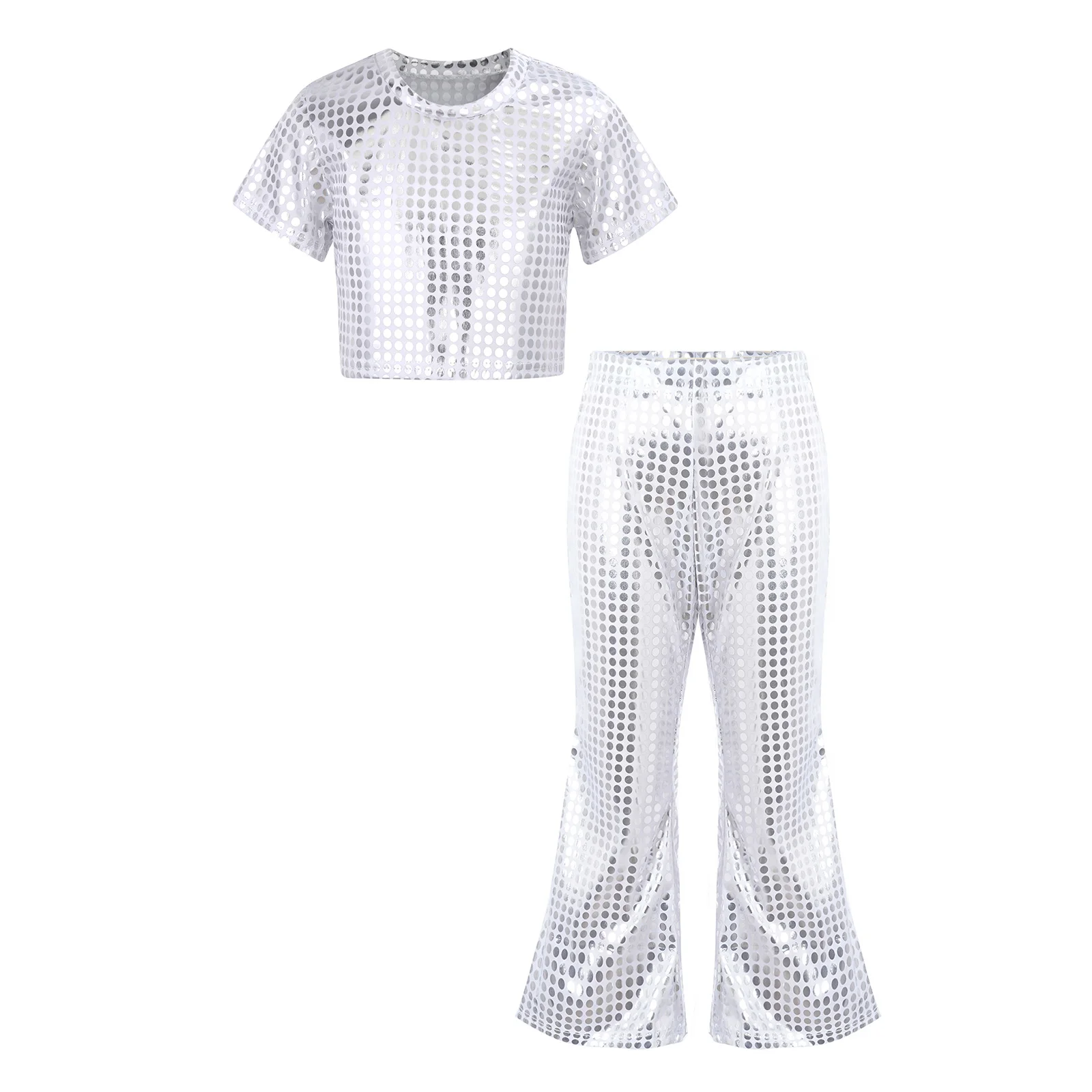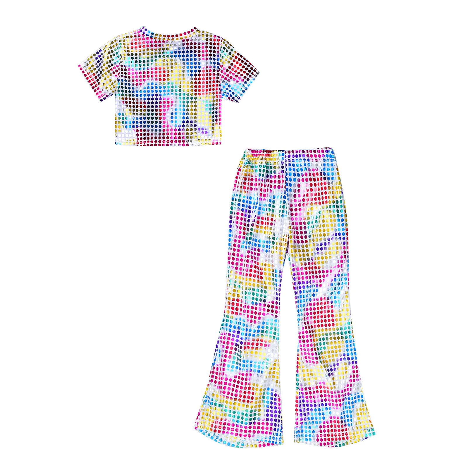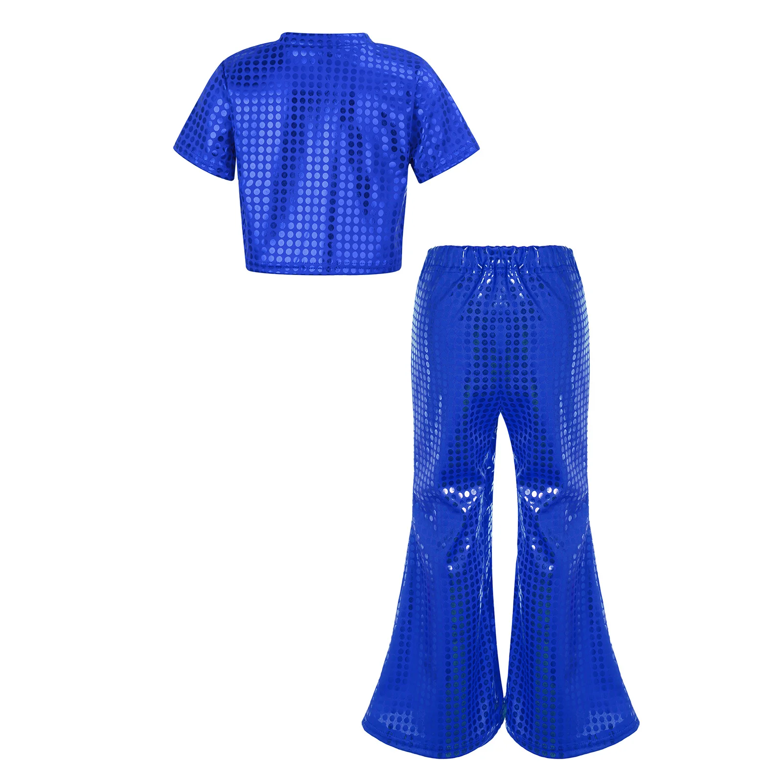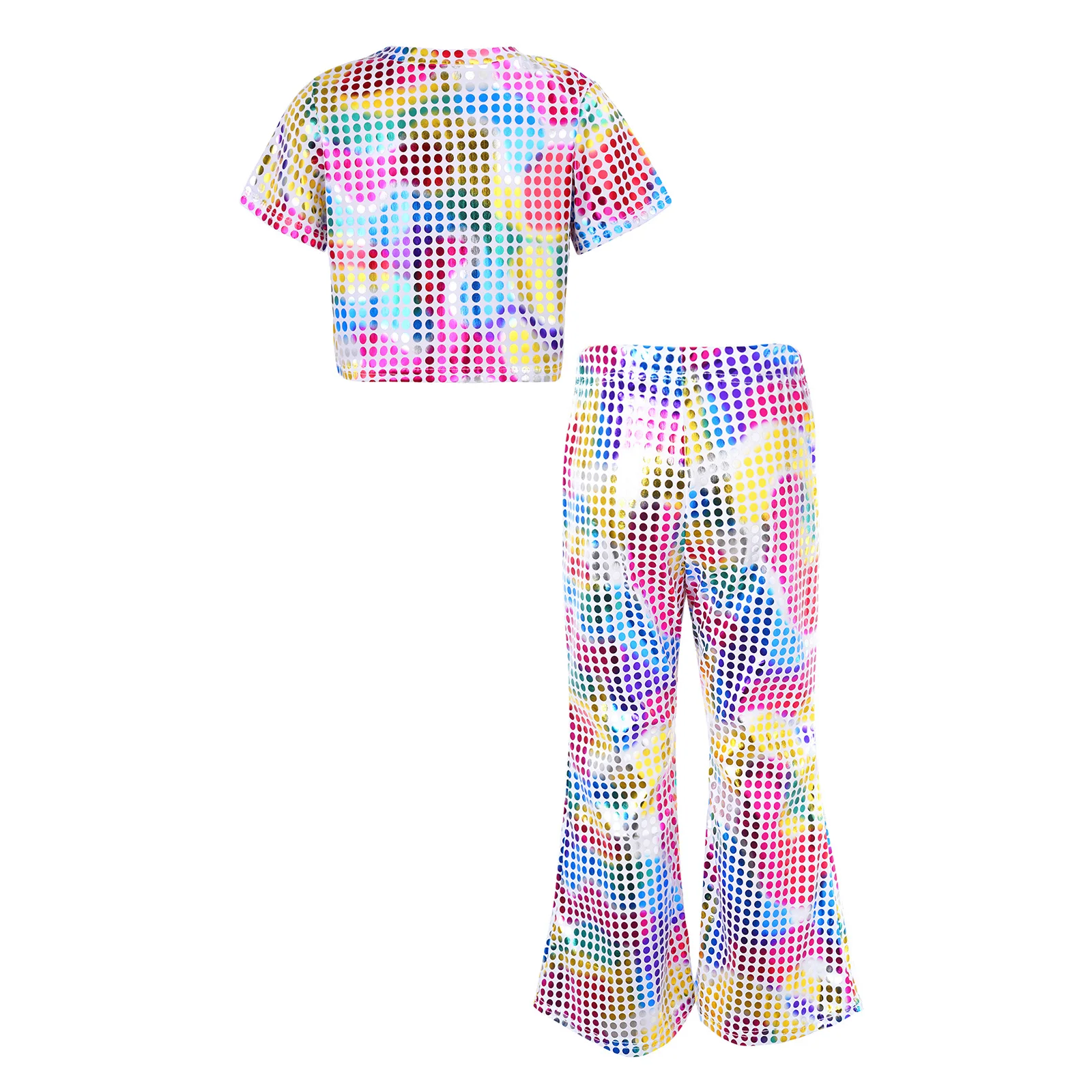 Comprar Conjuntos de baile de Jazz latino para niñas, traje de baile corto, Top corto con pantalones acampanados para trajes, fiesta de baile, puesta en escena