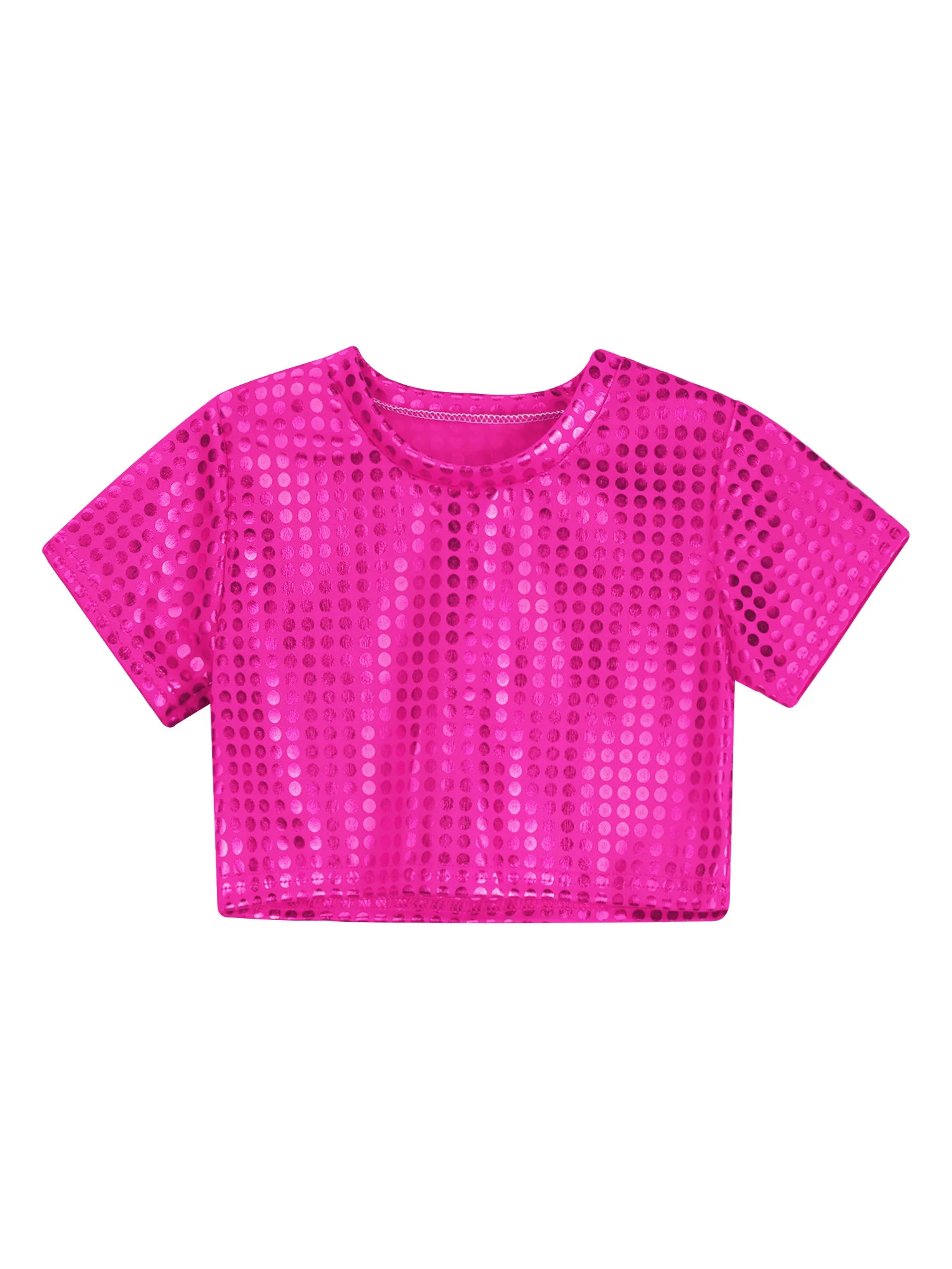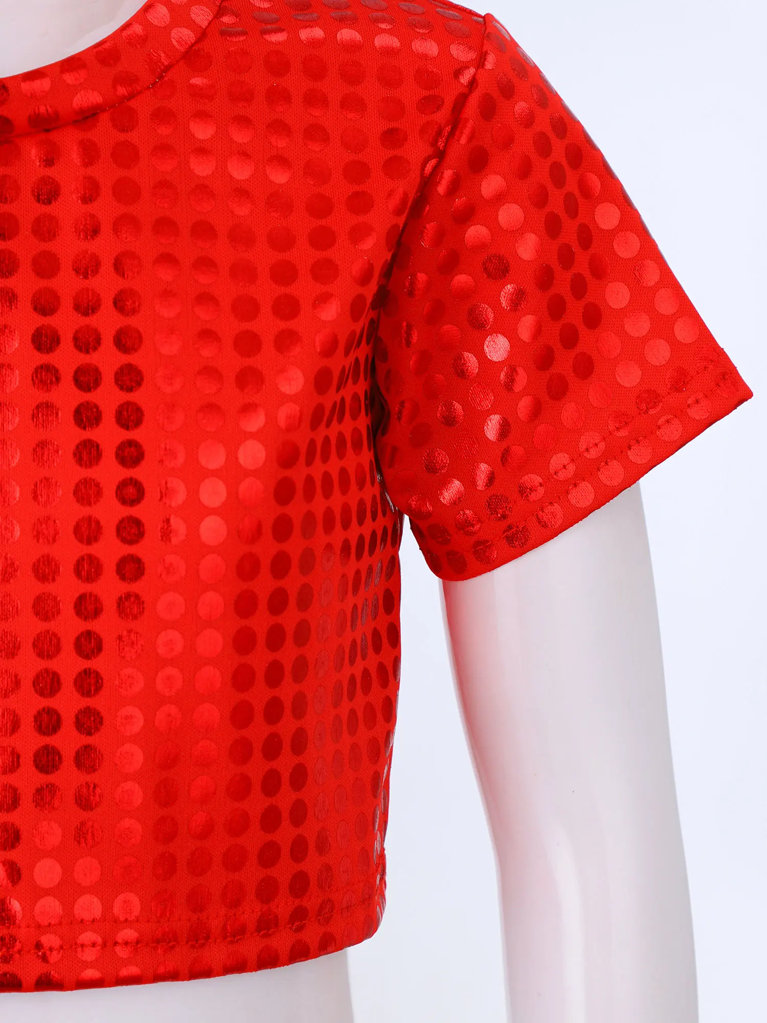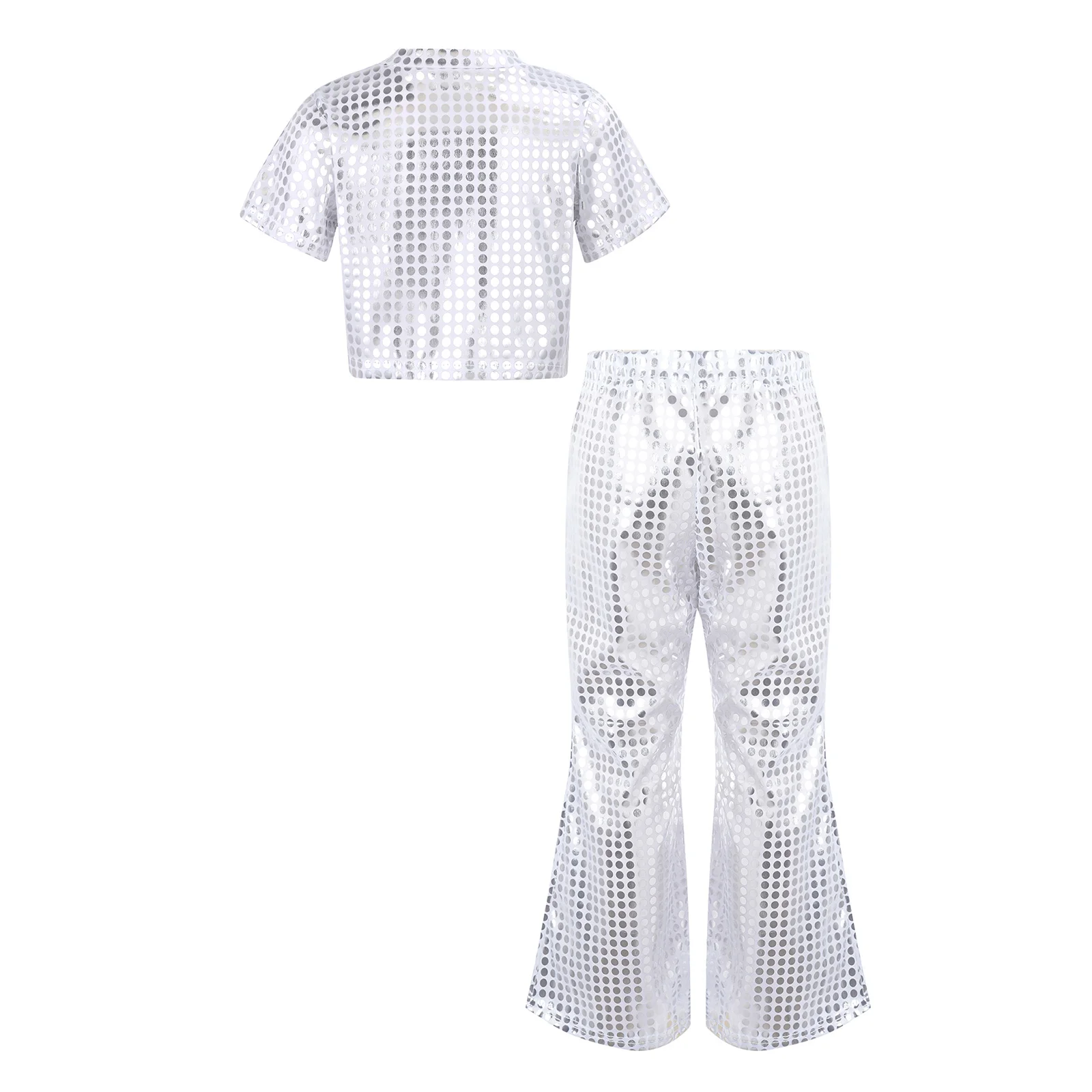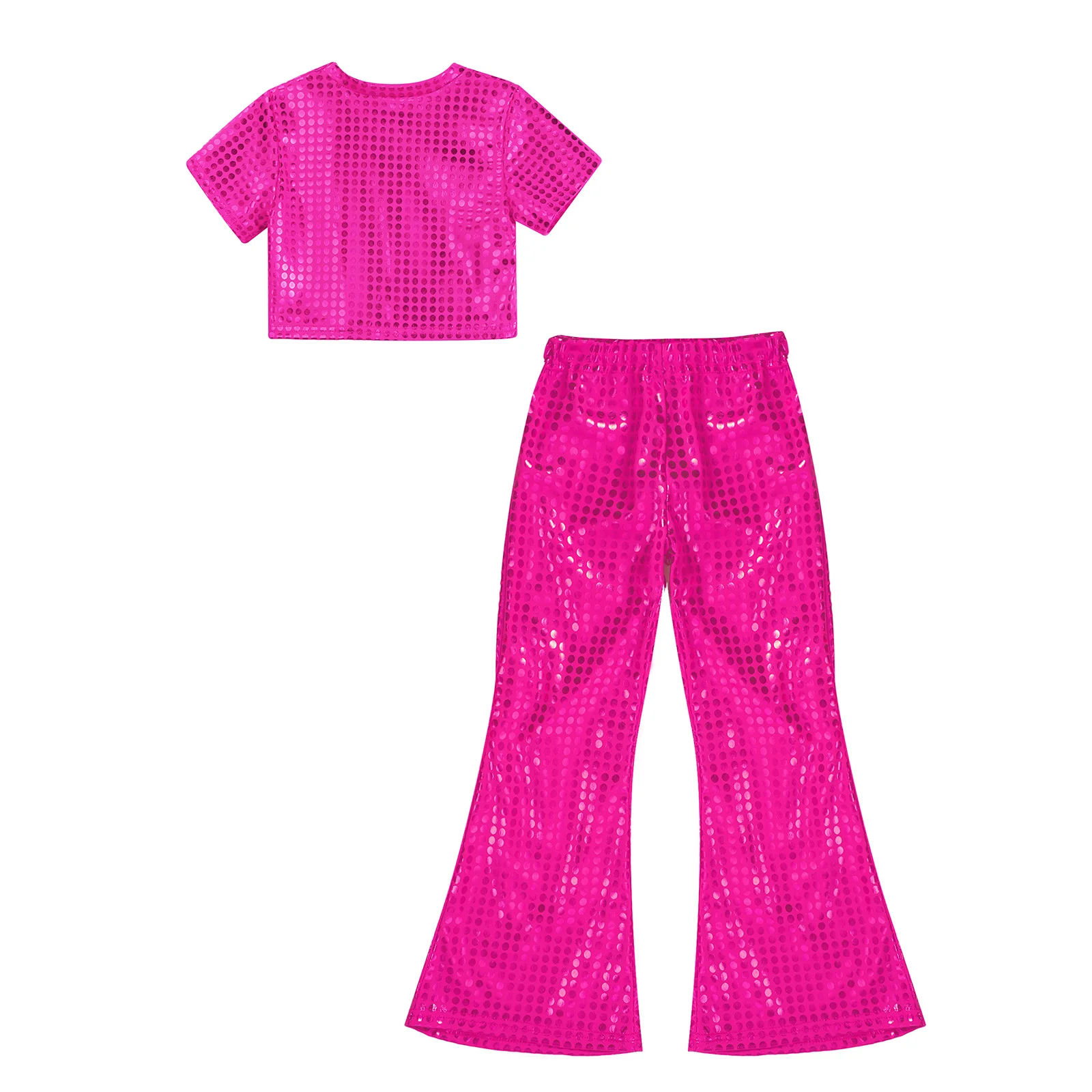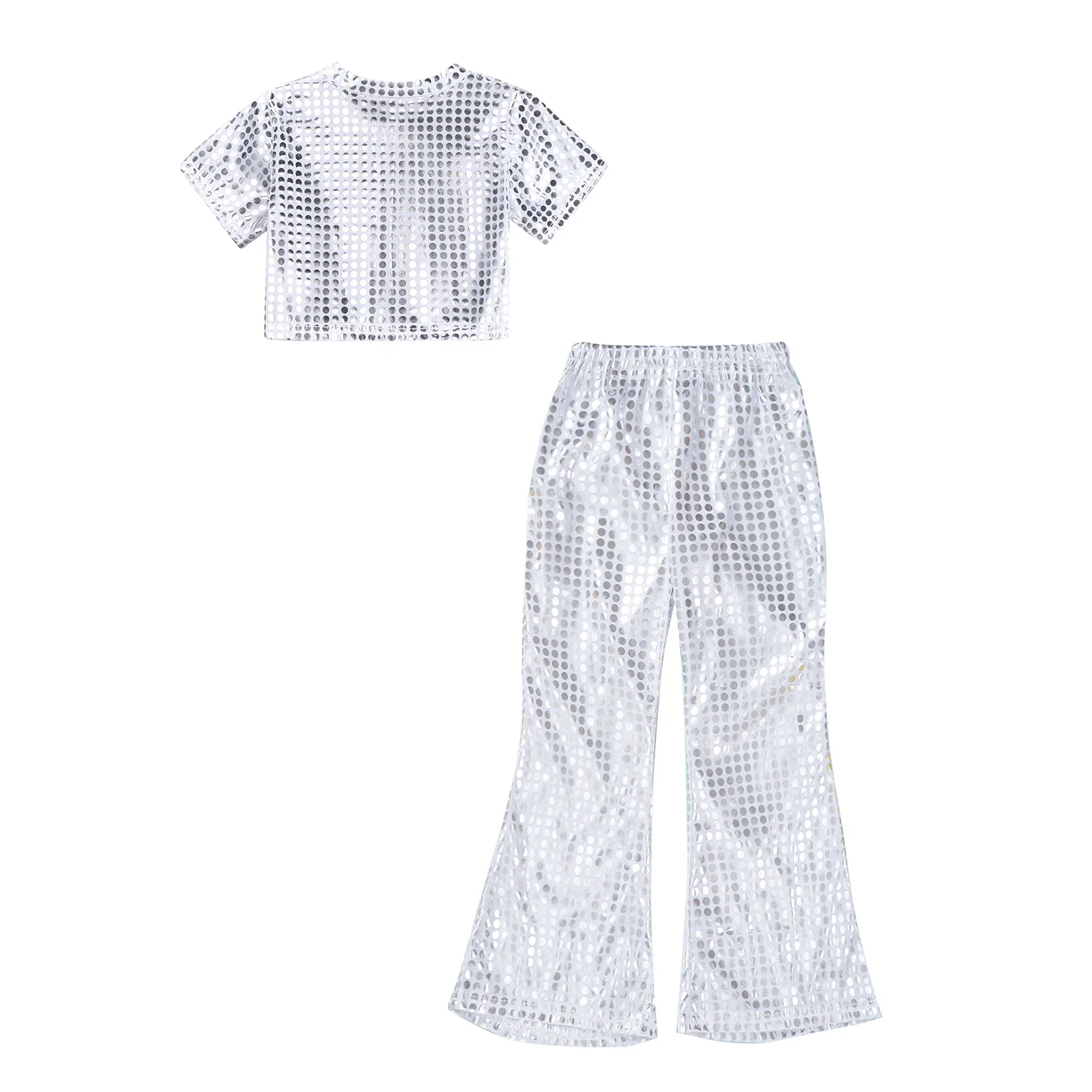 Comprar Conjuntos de baile de Jazz latino para niñas, traje de baile corto, Top corto con pantalones acampanados para trajes, fiesta de baile, puesta en escena