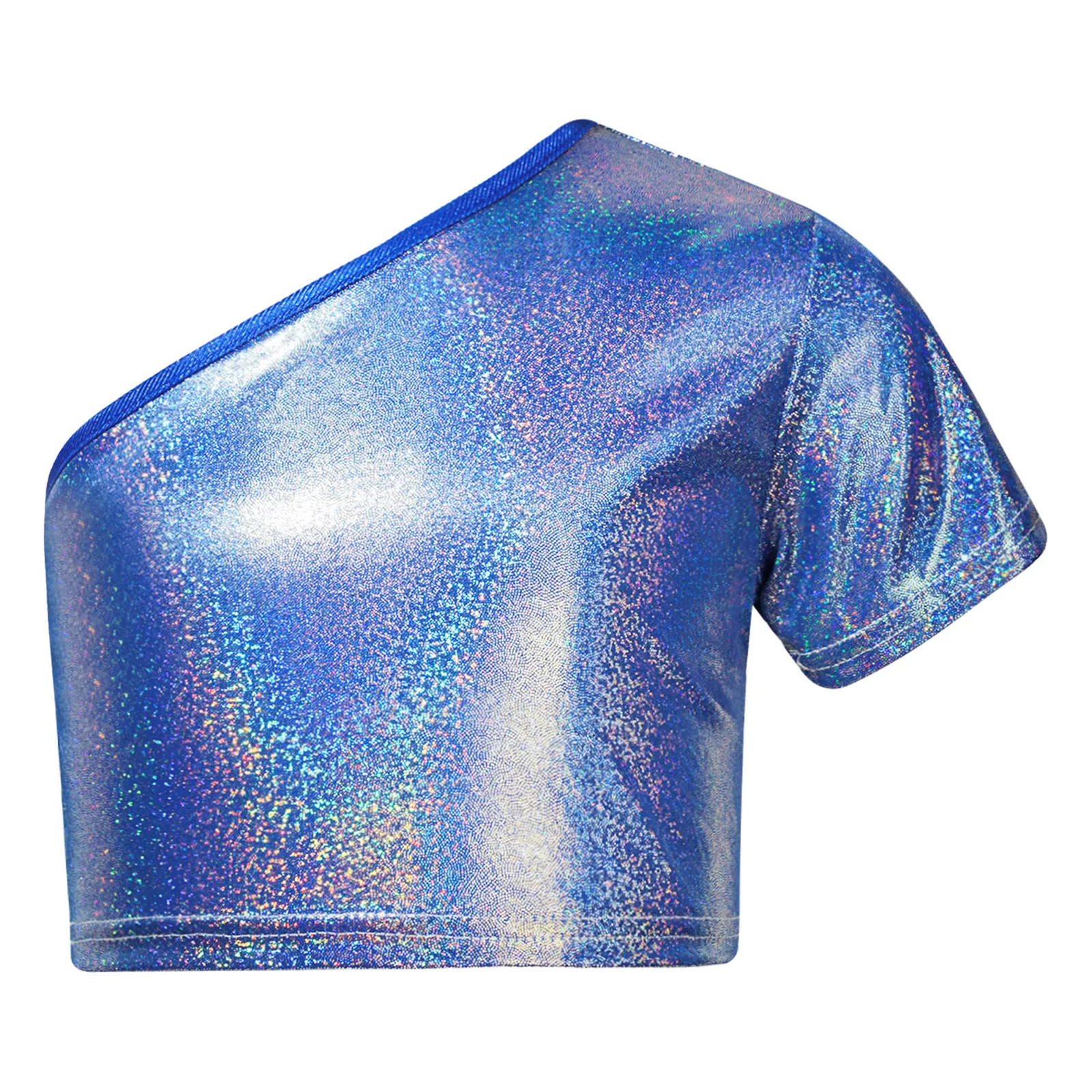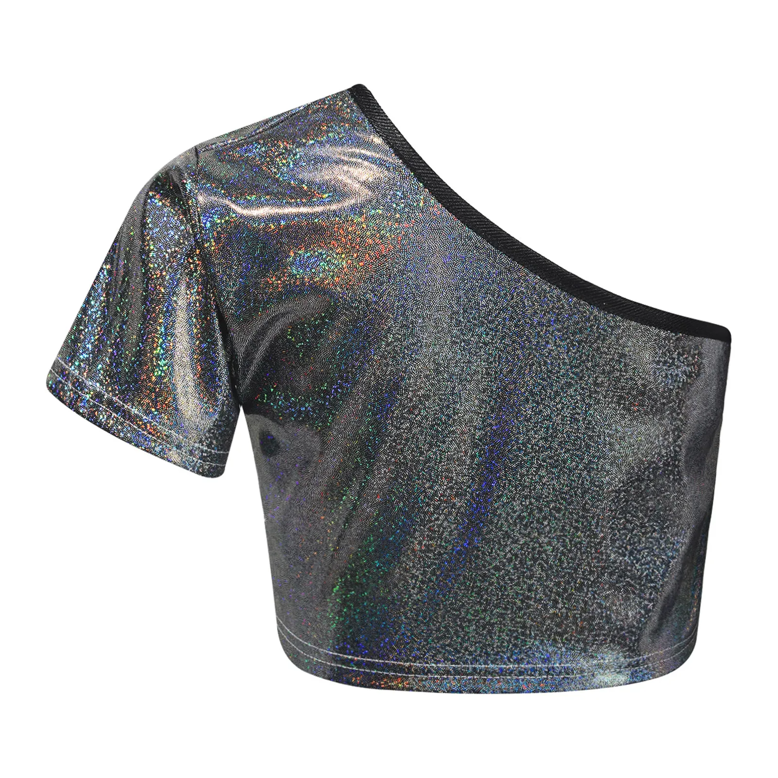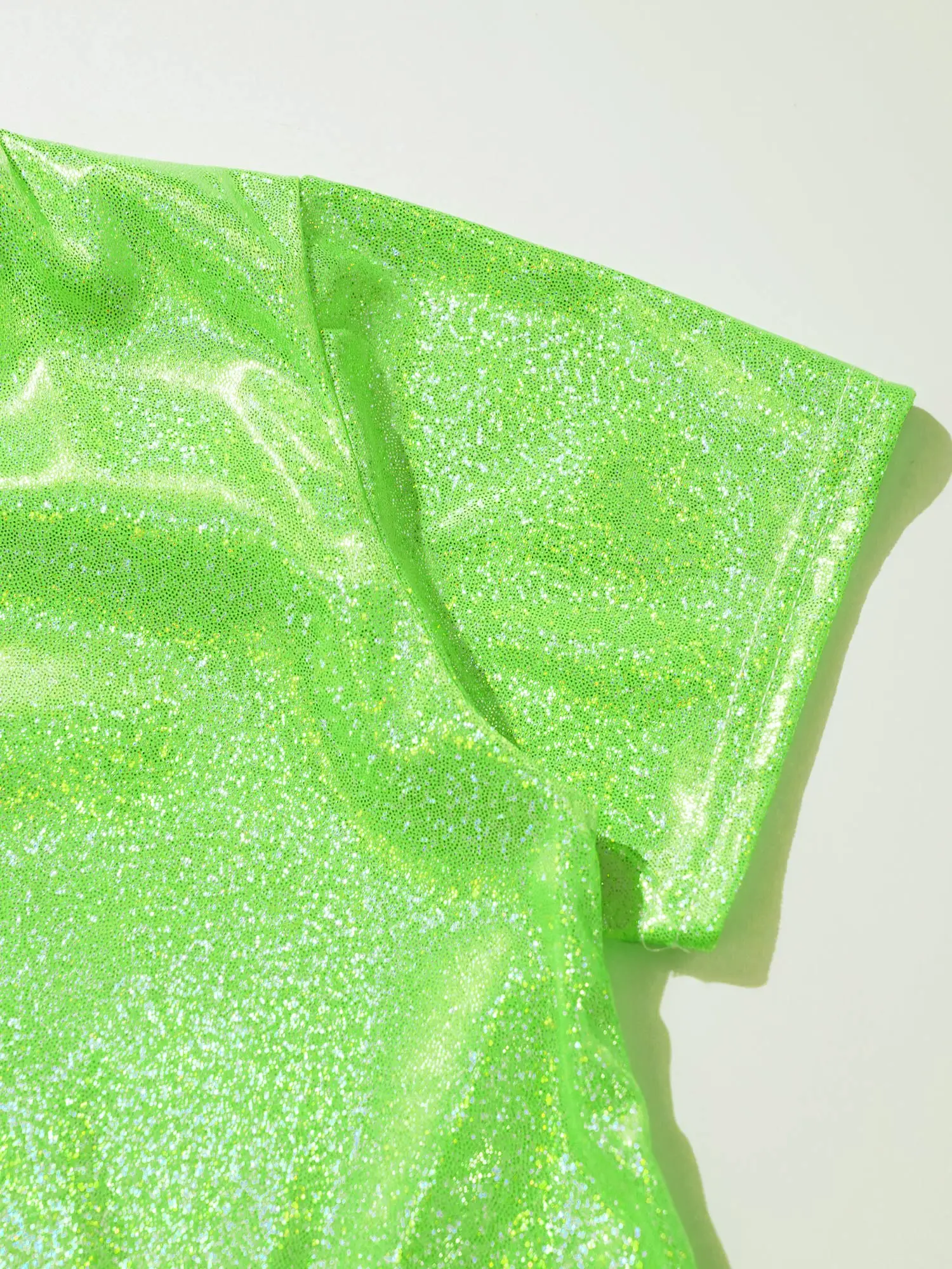 El traje de baile para niña con superficie metálica que brilla bajo la luz garantiza que sus hijos llamen la atención en el escenario.