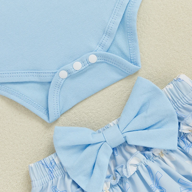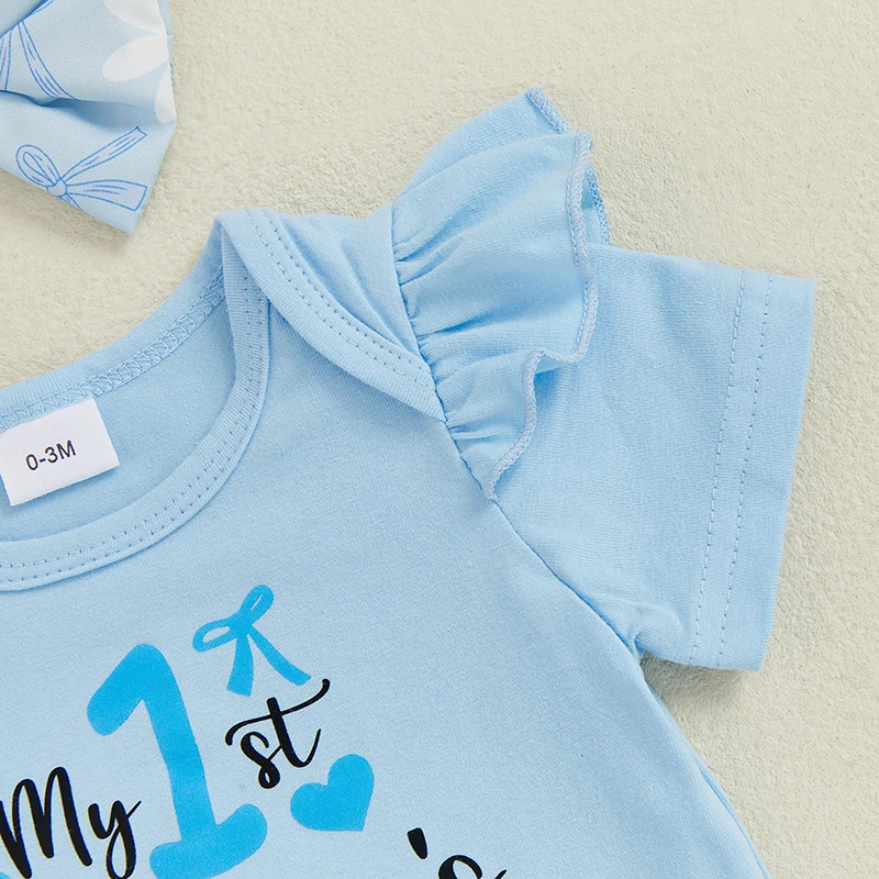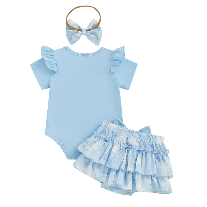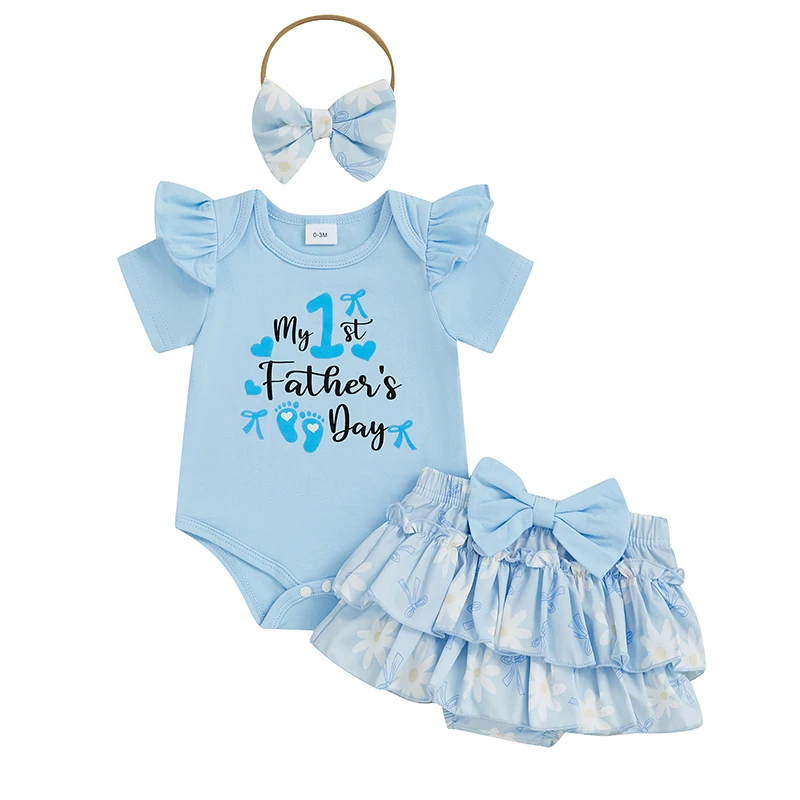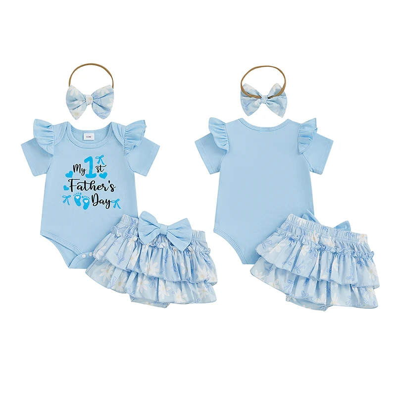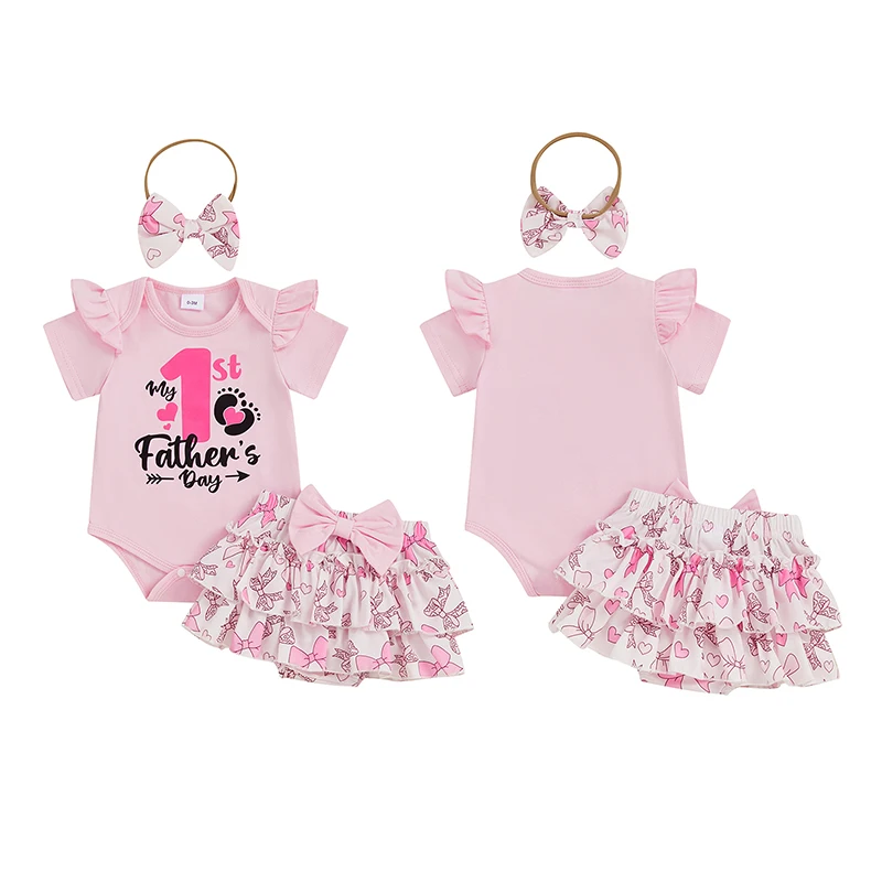 Conjuntos para el día del padre para niña, pelele de manga corta con cuello redondo y estampado de letras, pantalones cortos de cintura elástica, diadema, conjunto de ropa de 3 uds.