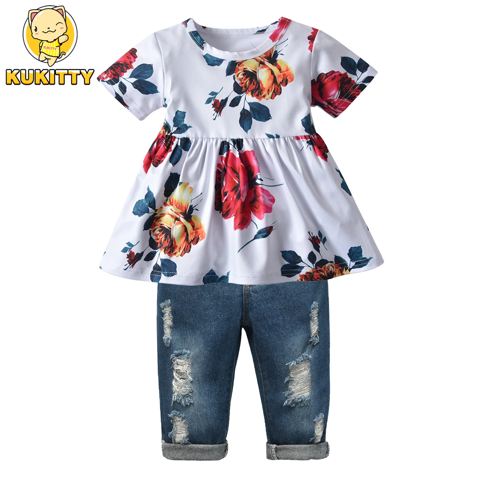Comprar Conjuntos informales para niños y niñas de 1 a 5 años, camiseta de manga corta con volantes y pantalones largos, conjuntos de ropa de verano