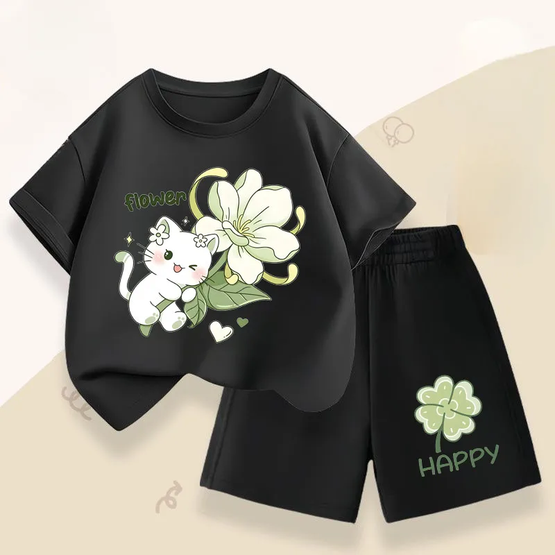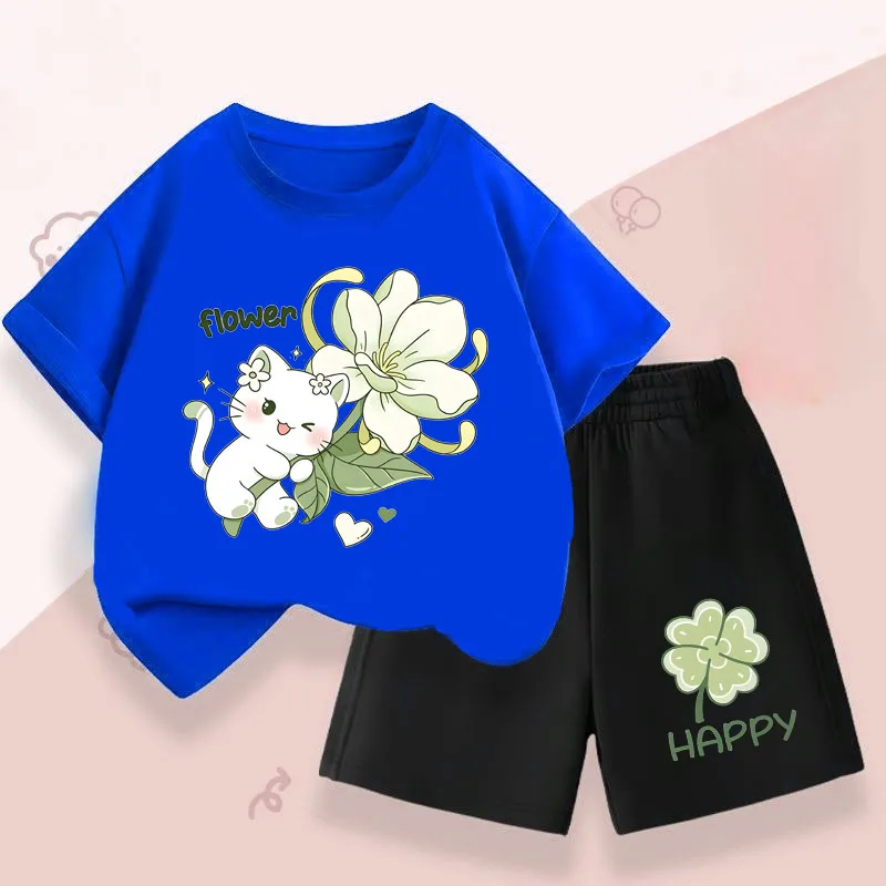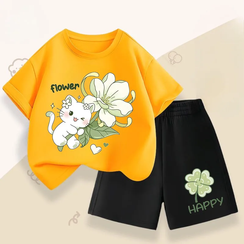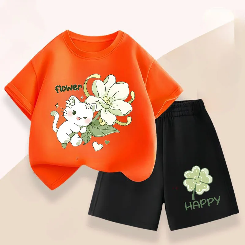 Conjuntos informales de verano para niñas, conjuntos de camisetas de manga corta para niños, camiseta transpirable, pantalones cortos, traje de dos piezas, ropa de vacaciones