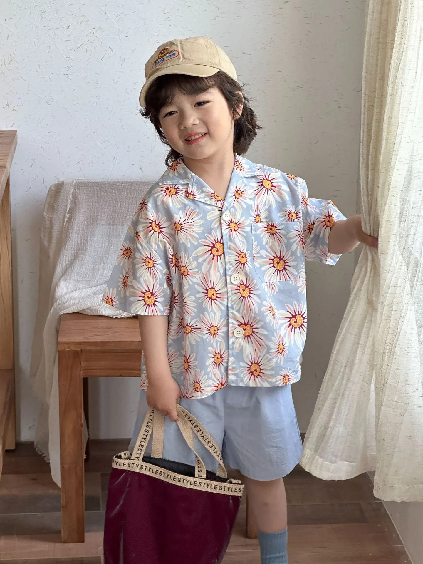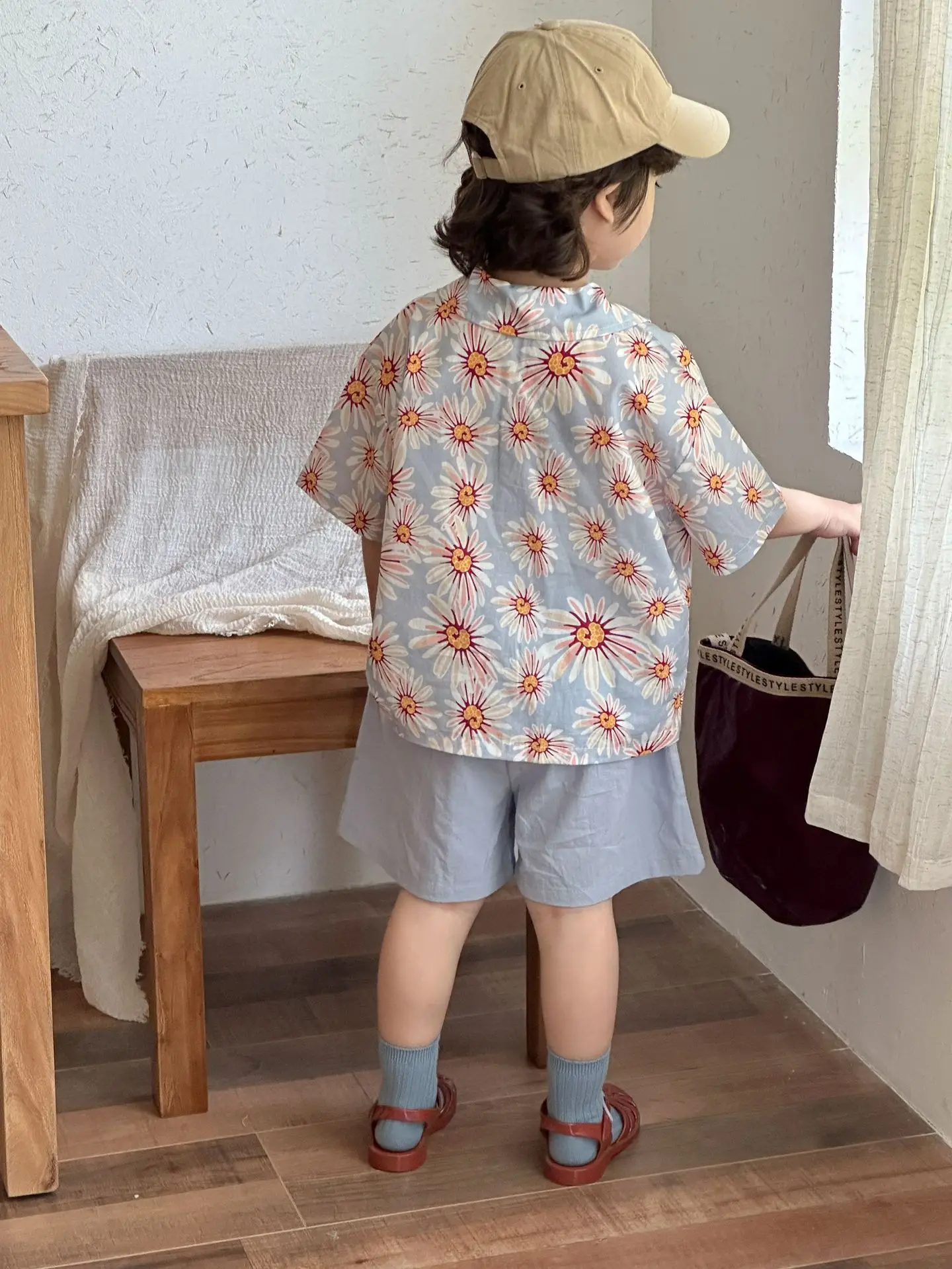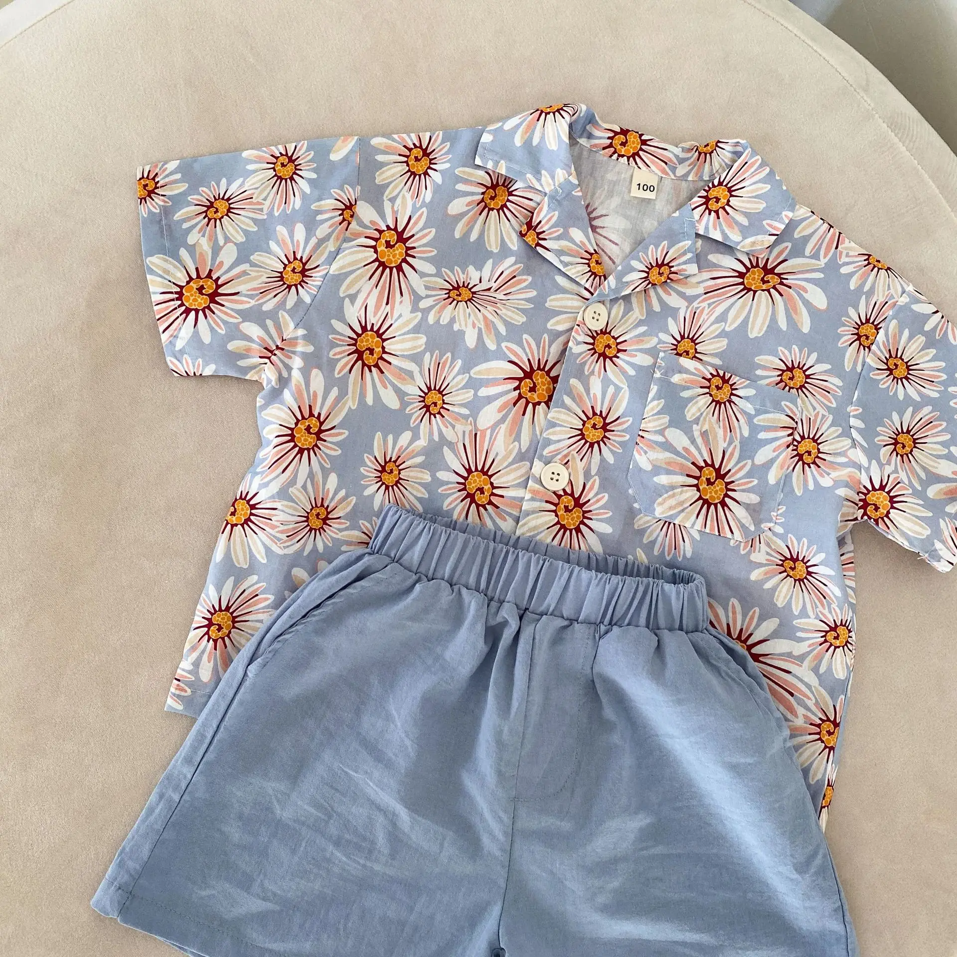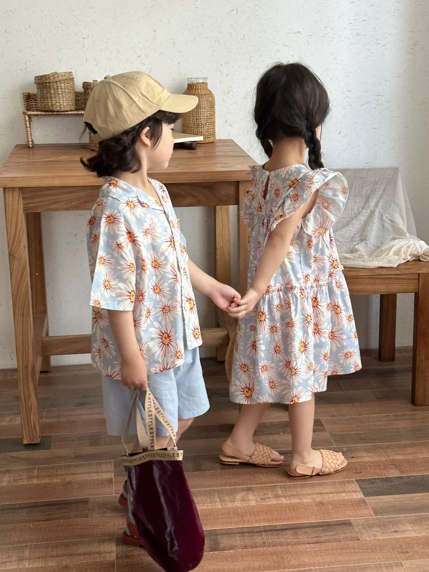 Comprar Conjuntos a juego de verano para niños y niñas, camisa cómoda de algodón, pantalones cortos, vestido Floral acampanado sin mangas, traje para hermanos