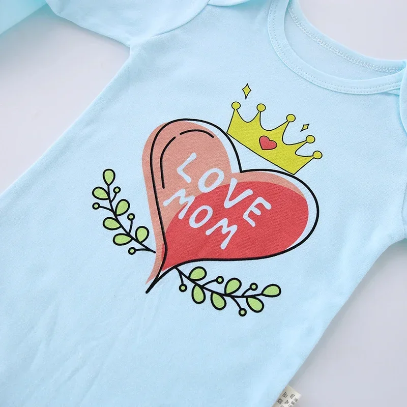 Conjuntos de manga larga para bebé recién nacido, niña y niño, Tops de algodón con bonitos dibujos de corazón de amor para mamá, pantalones y pelele, 10 unidades/juego de ropa