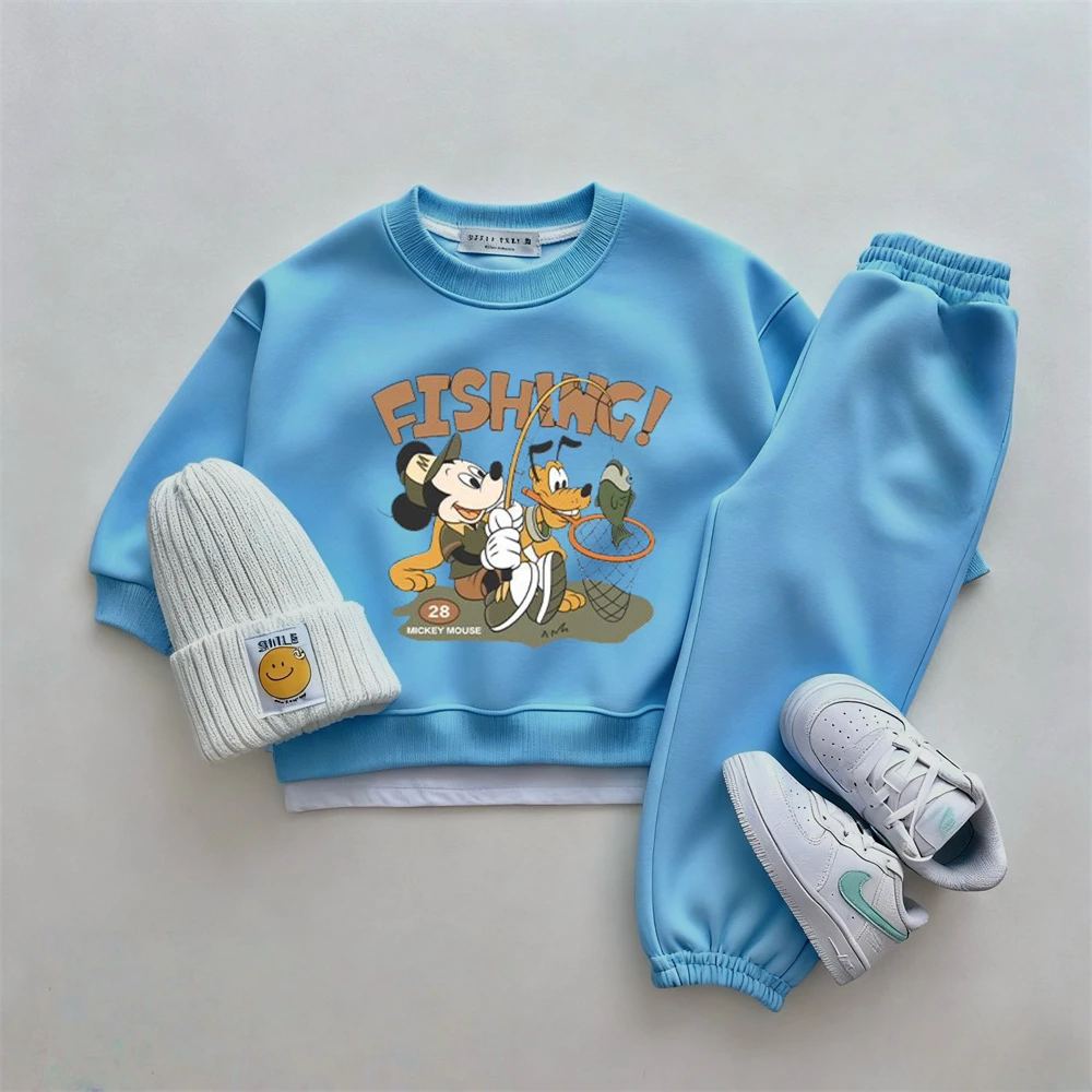 Comprar Conjuntos de manga larga para niños, sudaderas y pantalones de dibujos animados, conjunto de dos piezas, Sudadera con capucha bonita, pantalones sueltos, ropa Popular para bebés