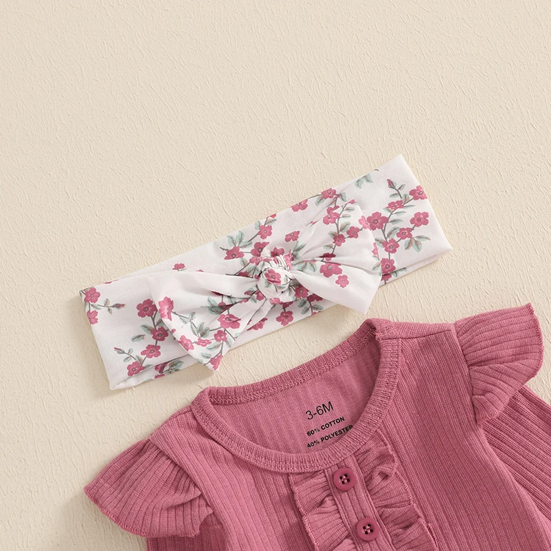 Comprar Conjuntos de pantalones de 3 piezas para niñas pequeñas, pelele acanalado de manga larga con cuello redondo, pantalones acampanados florales, conjuntos de diadema
