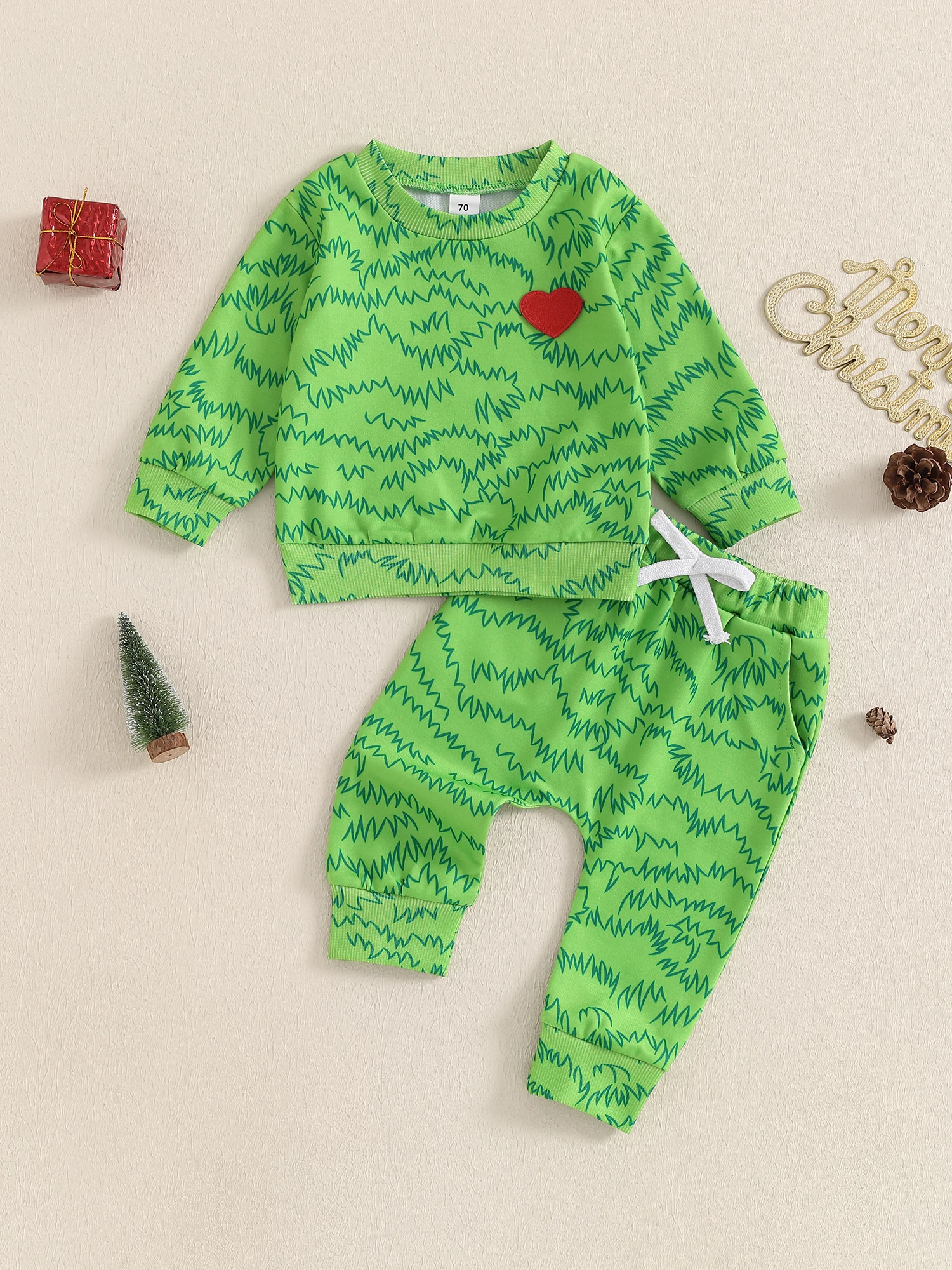 Conjuntos de pantalones navideños para niños Sudadera con estampado de patrón de manga larga Conjuntos de pantalones con cordón