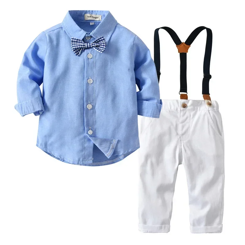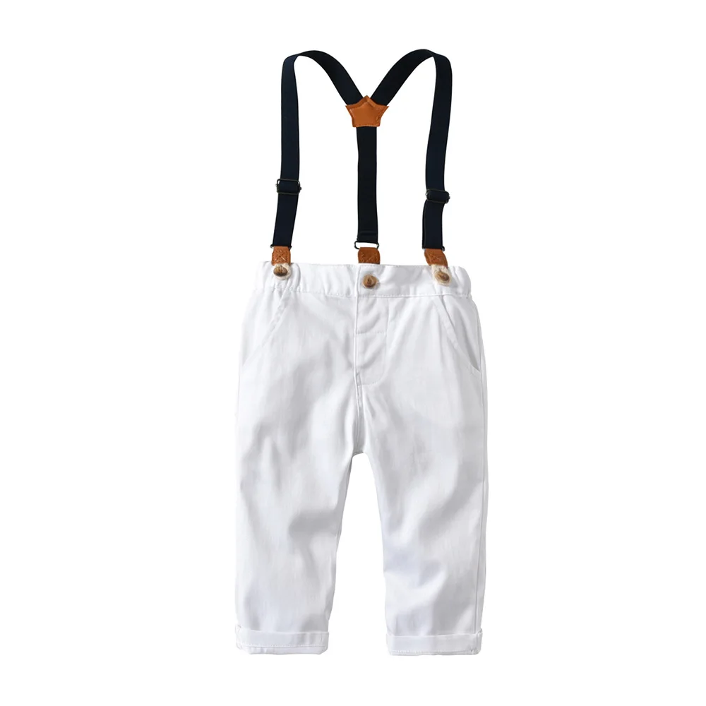 Comprar Conjuntos de pantalones con tirantes para caballero, corbata de 70-140cm, ropa para niño, conjunto de camisa y pantalones de manga larga, novedad de Otoño de 2024