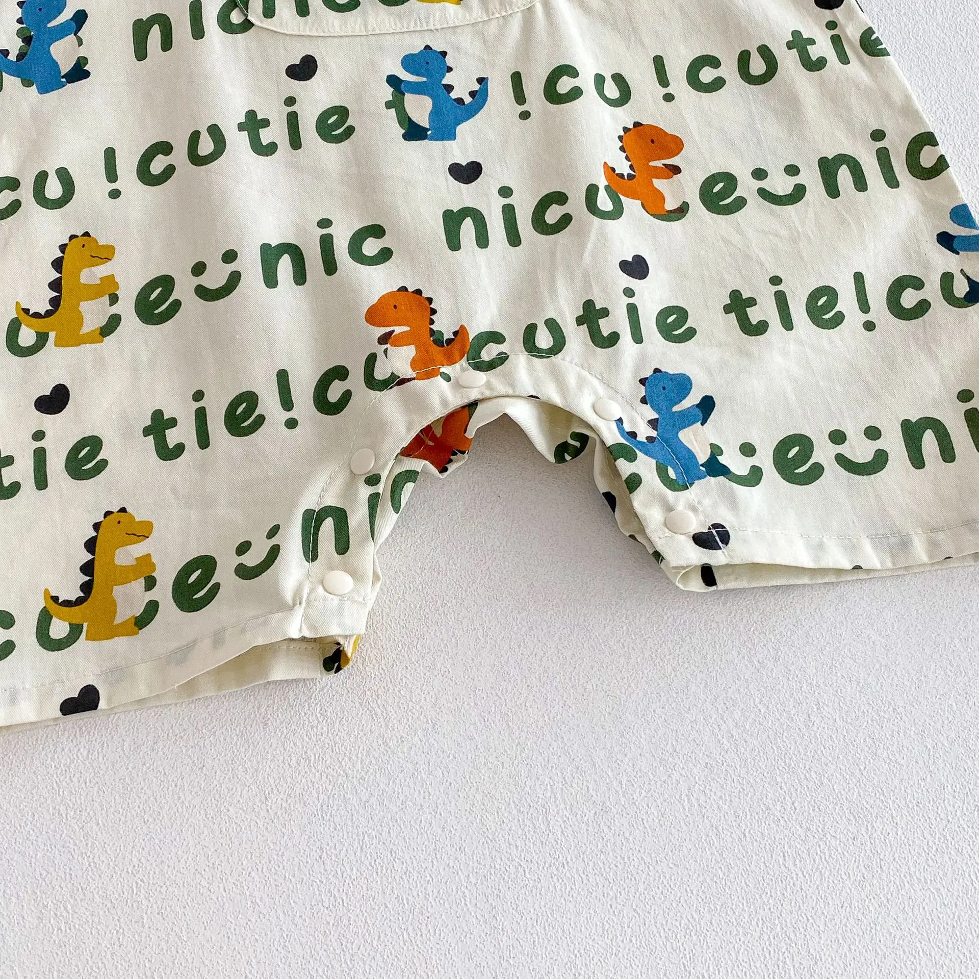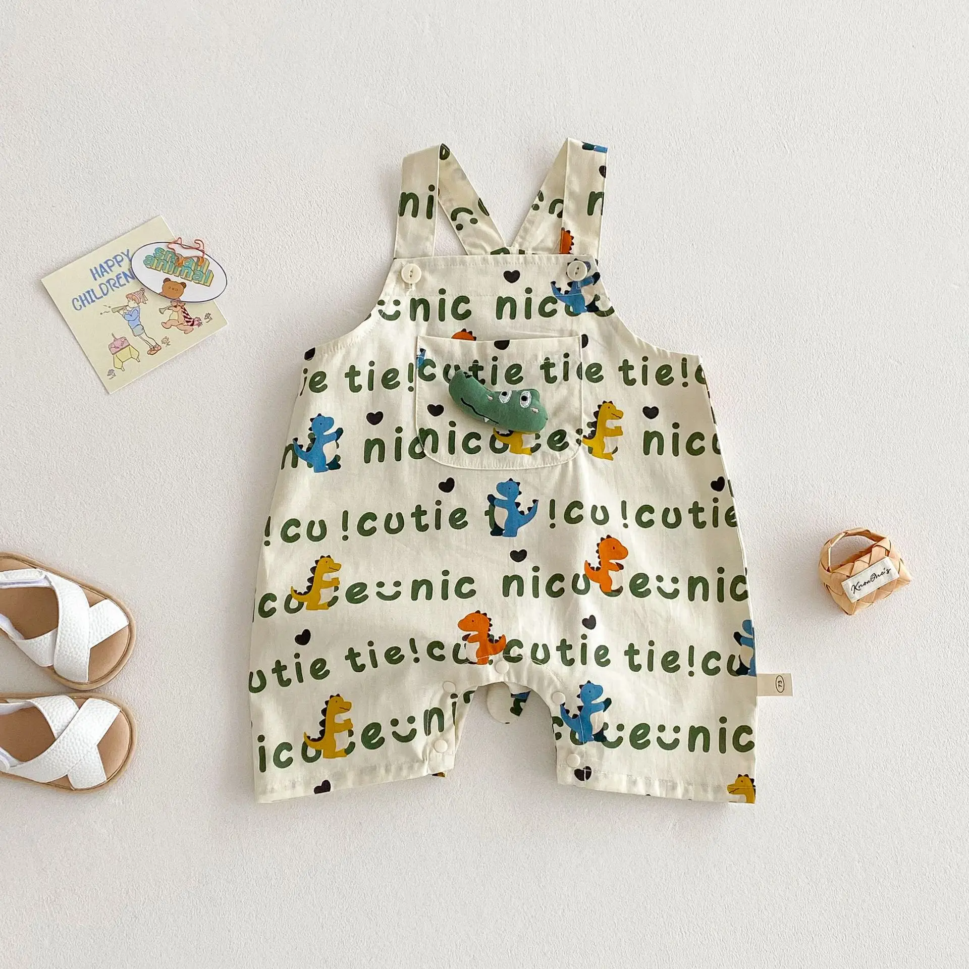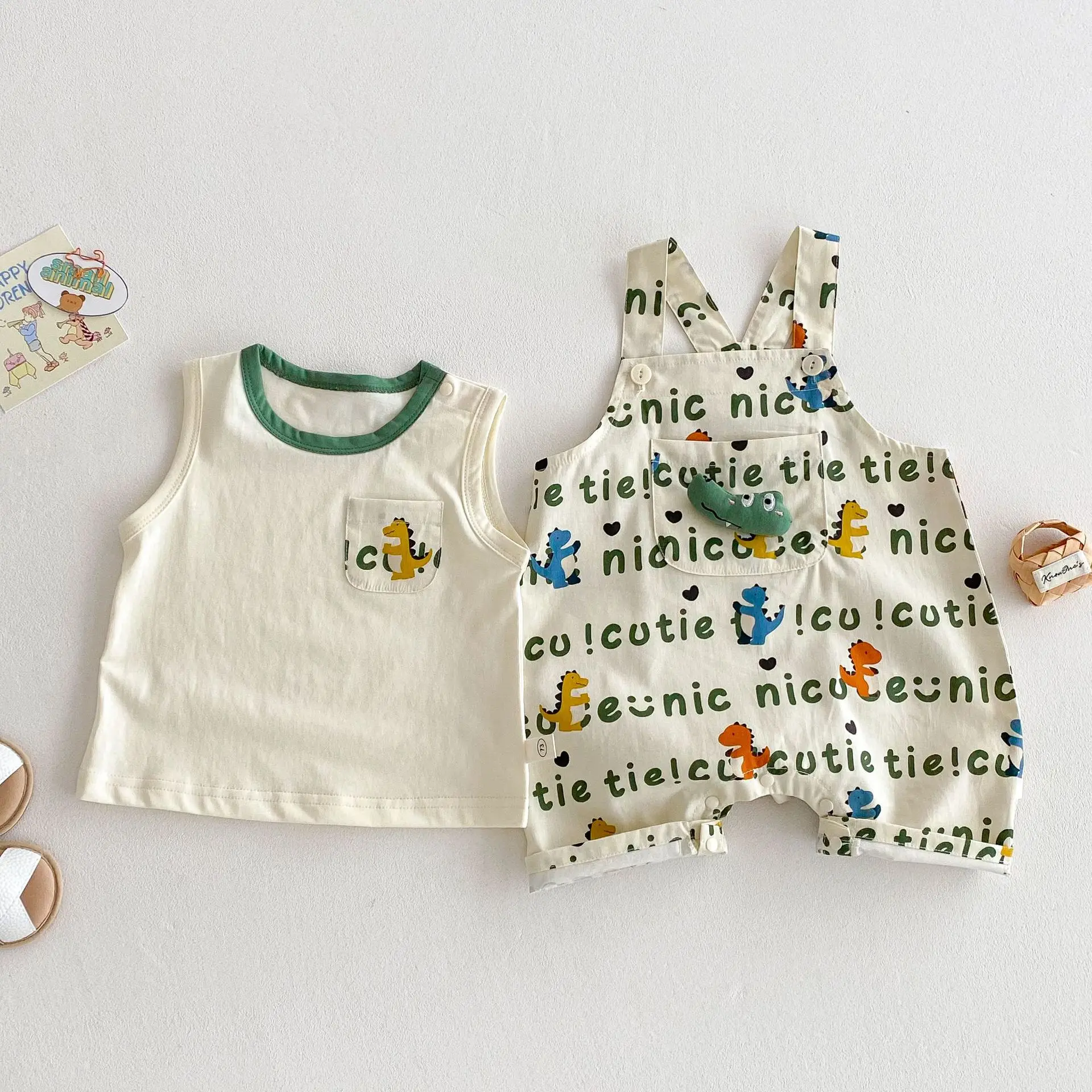 Conjuntos de pelele con tirantes de dinosaurio para bebés de 0 a 3 años, camiseta de dibujos animados y traje general, trajes coreanos de moda para niños pequeños, 2 uds.