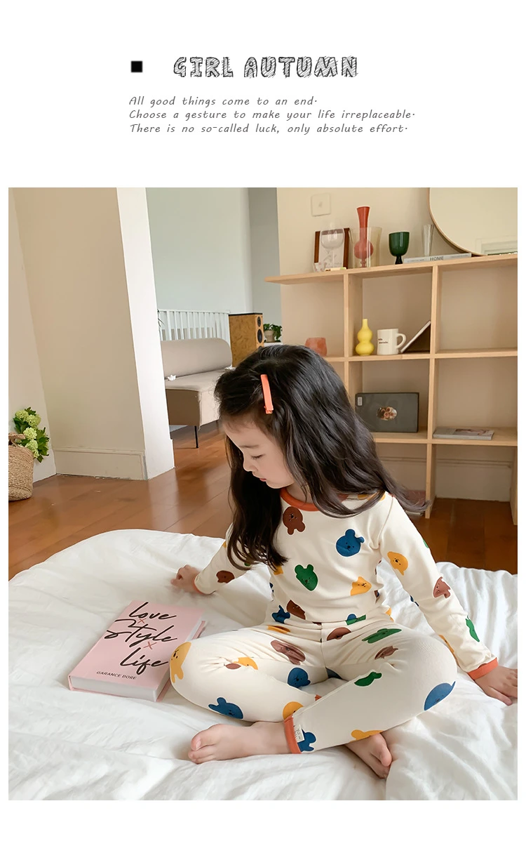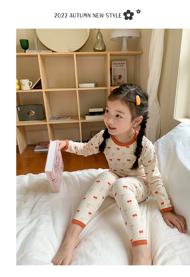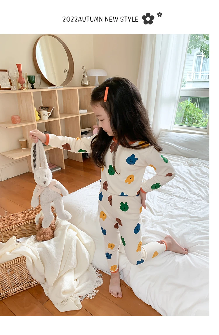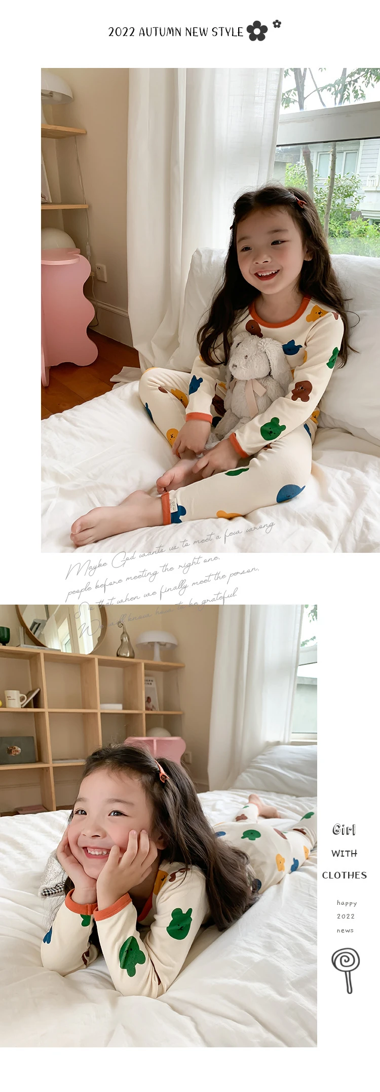 Conjuntos de pijamas para niños, conjunto de ropa de dormir para niñas, camiseta de manga larga de algodón + pantalón, ropa de dibujos animados para niñas, traje de pijama, 2022Tamaño
