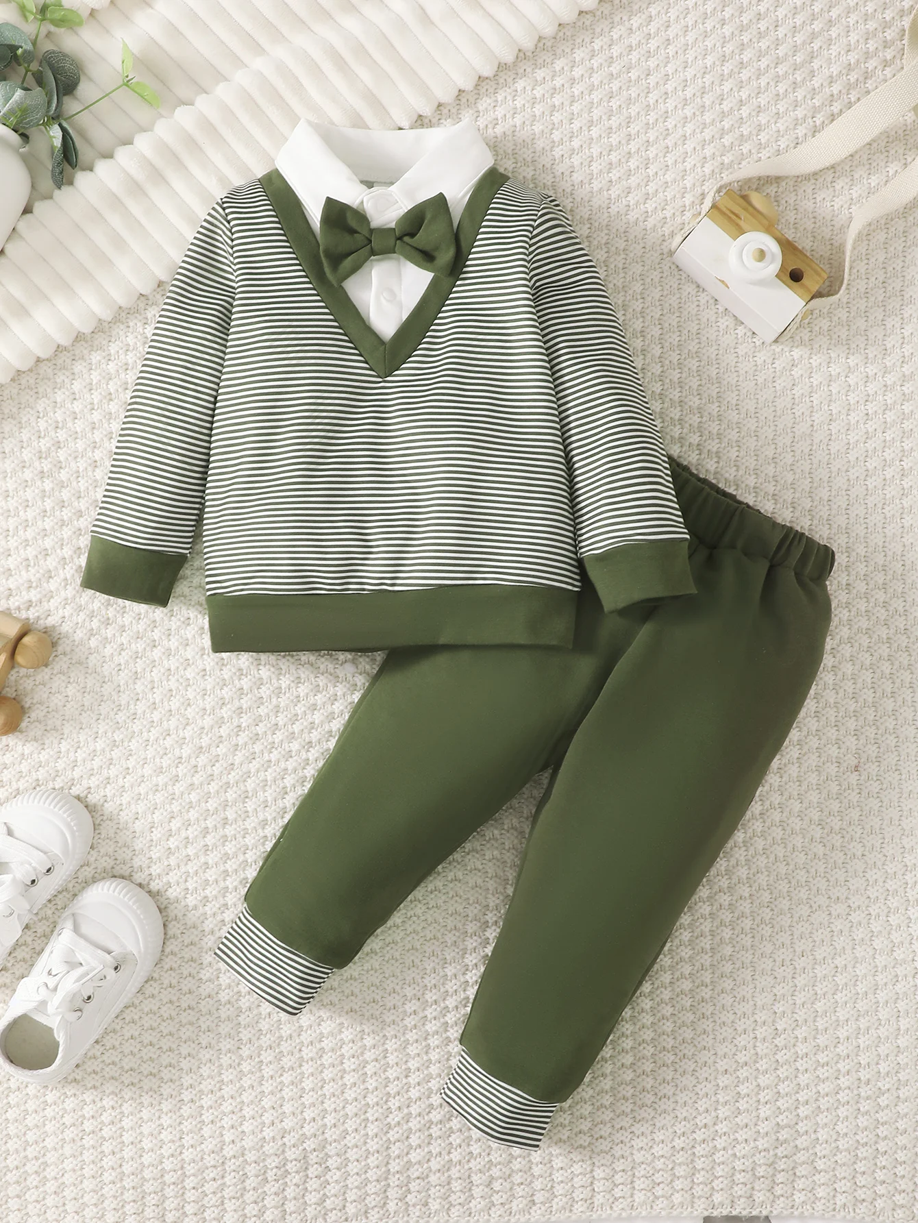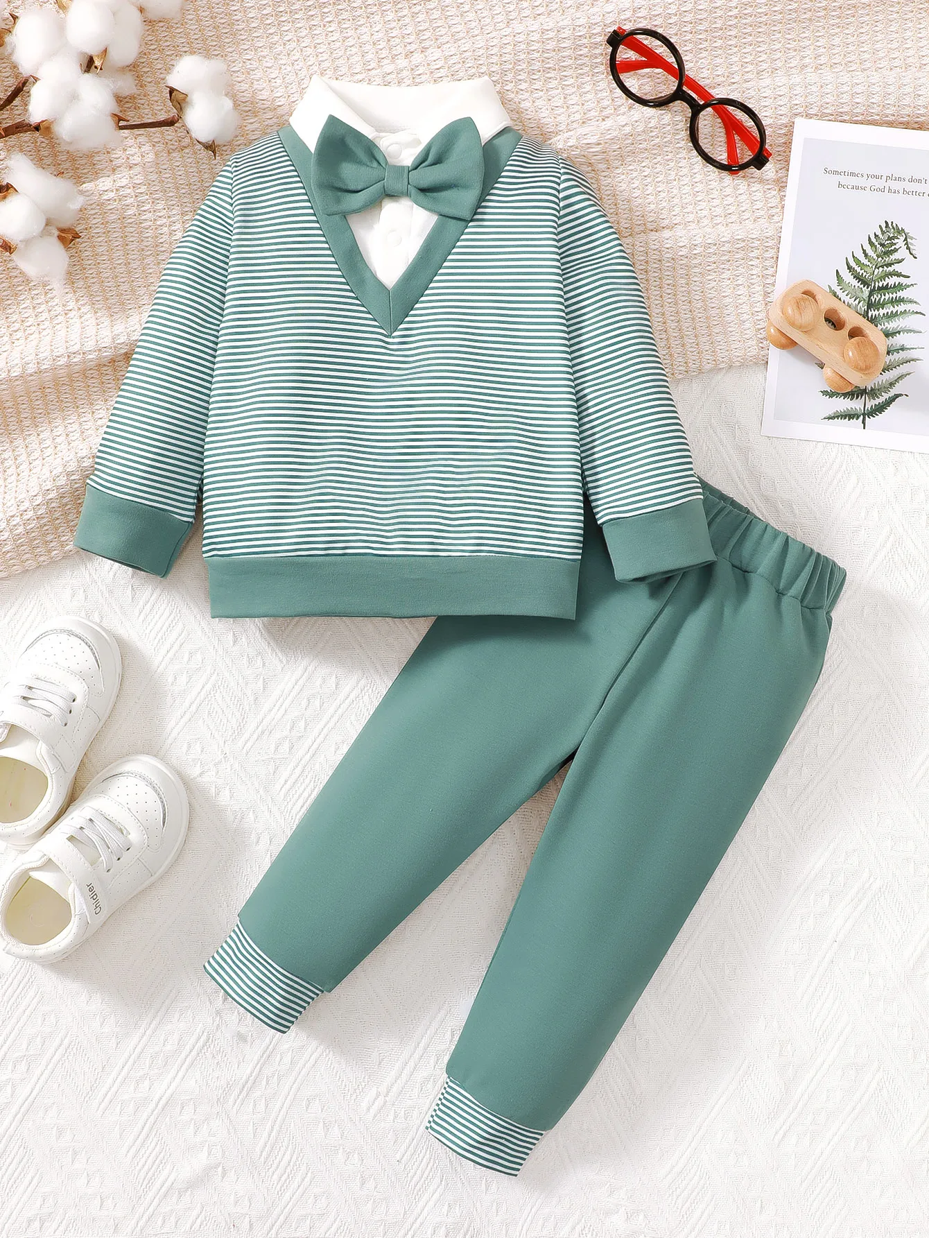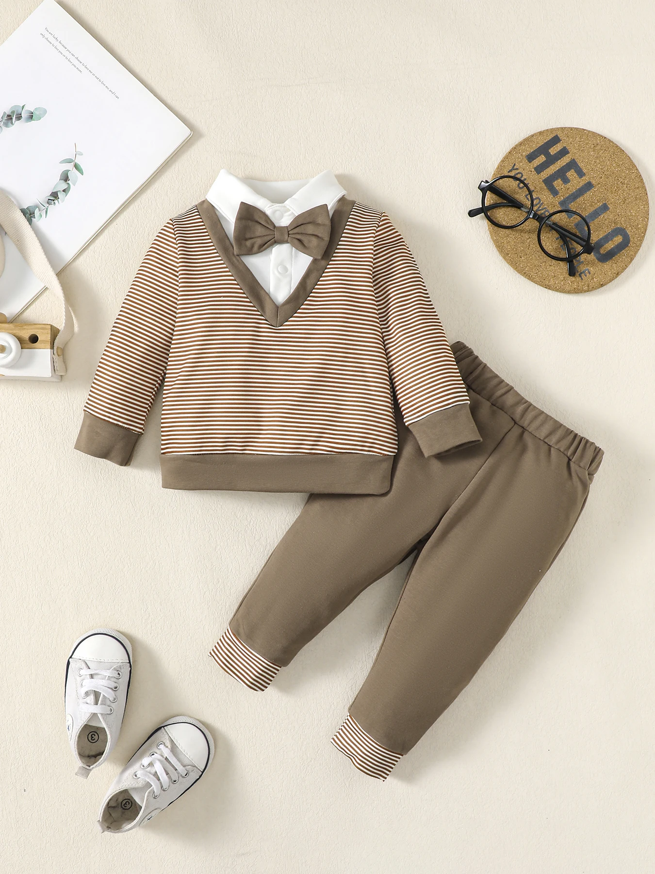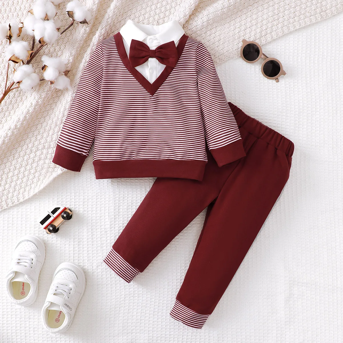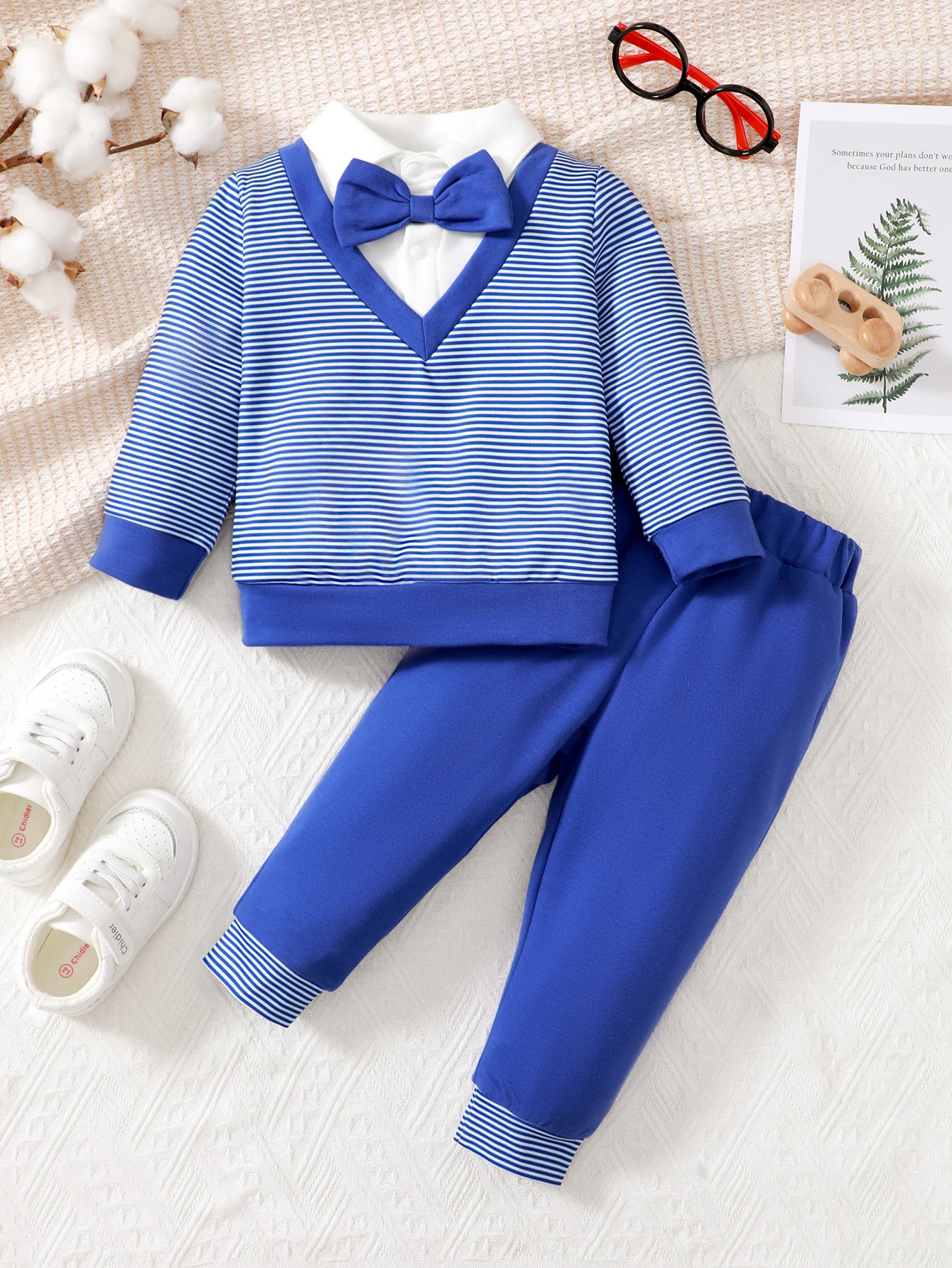 Comprar Conjuntos de ropa para bebés de 2 uds., manga larga con lazos, Top a rayas y pantalones, ropa de primavera para niños pequeños de 0 a 3 años