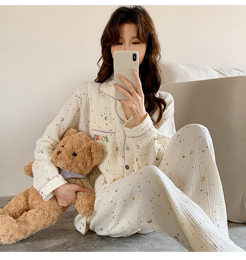 Conjuntos de ropa de dormir de maternidad y lactancia de algodón, cárdigan de dibujos animados, pijamas, traje, ropa para mujeres embarazadas, ropa para el hogar de otoño