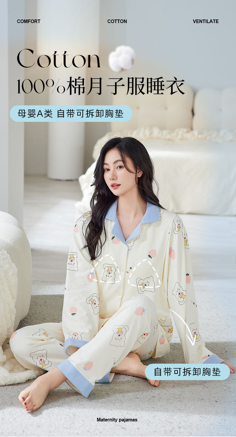 Conjuntos de ropa de dormir de maternidad para lactancia, pijamas de lactancia de algodón de manga larga de otoño para mujeres embarazadas, ropa cómoda para el hogar